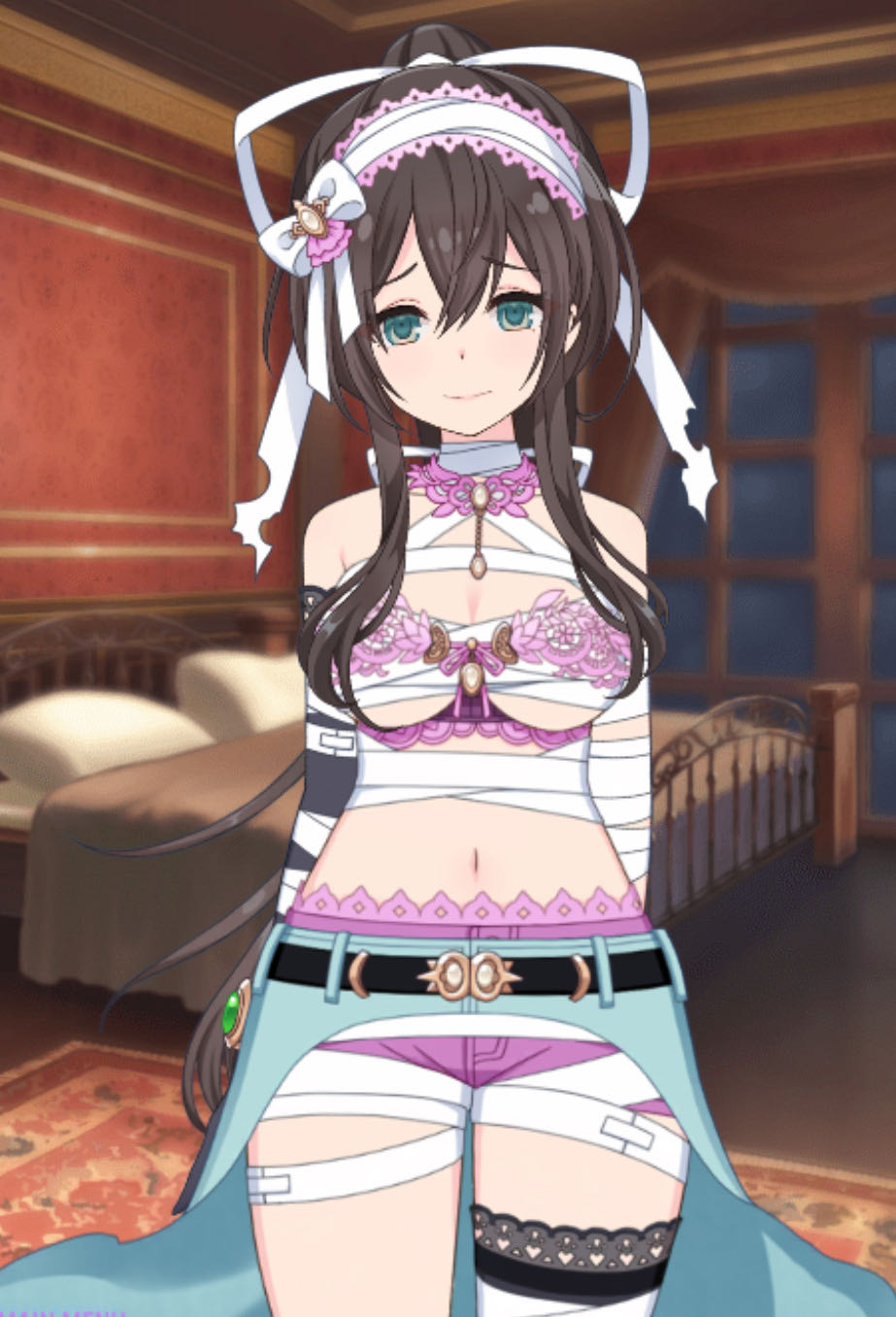 無規制版セクメトは、踊り子みたいな乳首当て&首元から垂れた紐で割れ目を正面からのみかろうじて見せない状態にしているだけで、あとはほぼ全裸というエロソシャゲでも早々いないビジュアルだから、各自で画像検索してもらう他ない露出度ですからね。>>905