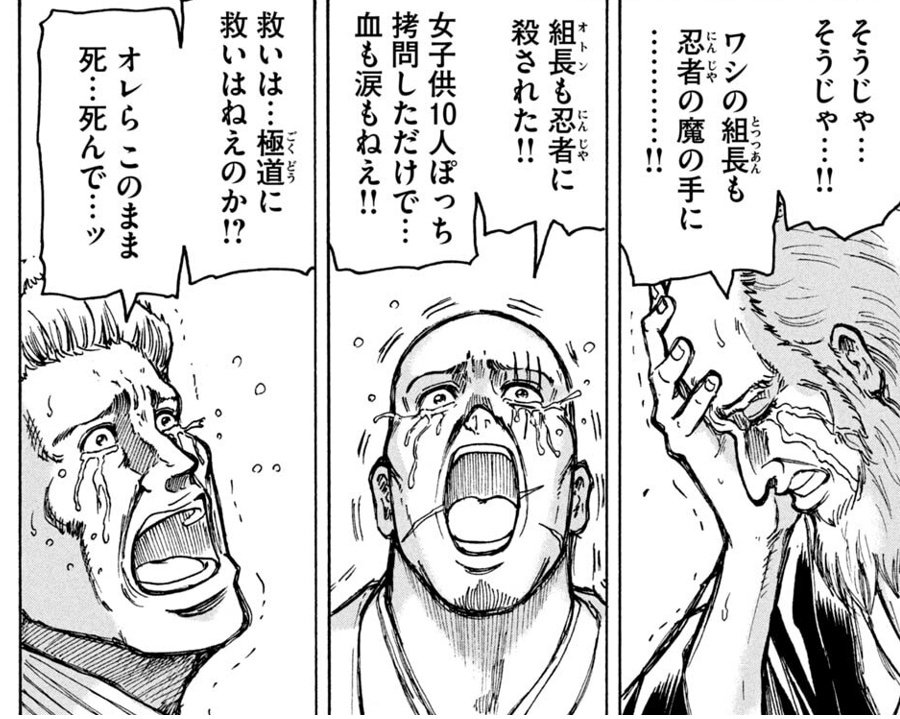 めちゃめちゃ強いわけでは無いけど後になっていくとなんなんだこの人となる観音寺。山爺はユーハバッハと同じくらい仲間を大事にしない結構な蛮族でした。話し合いとかまず昔ならしない全員殺してた開幕。今は違うから隙が出来てしまった。