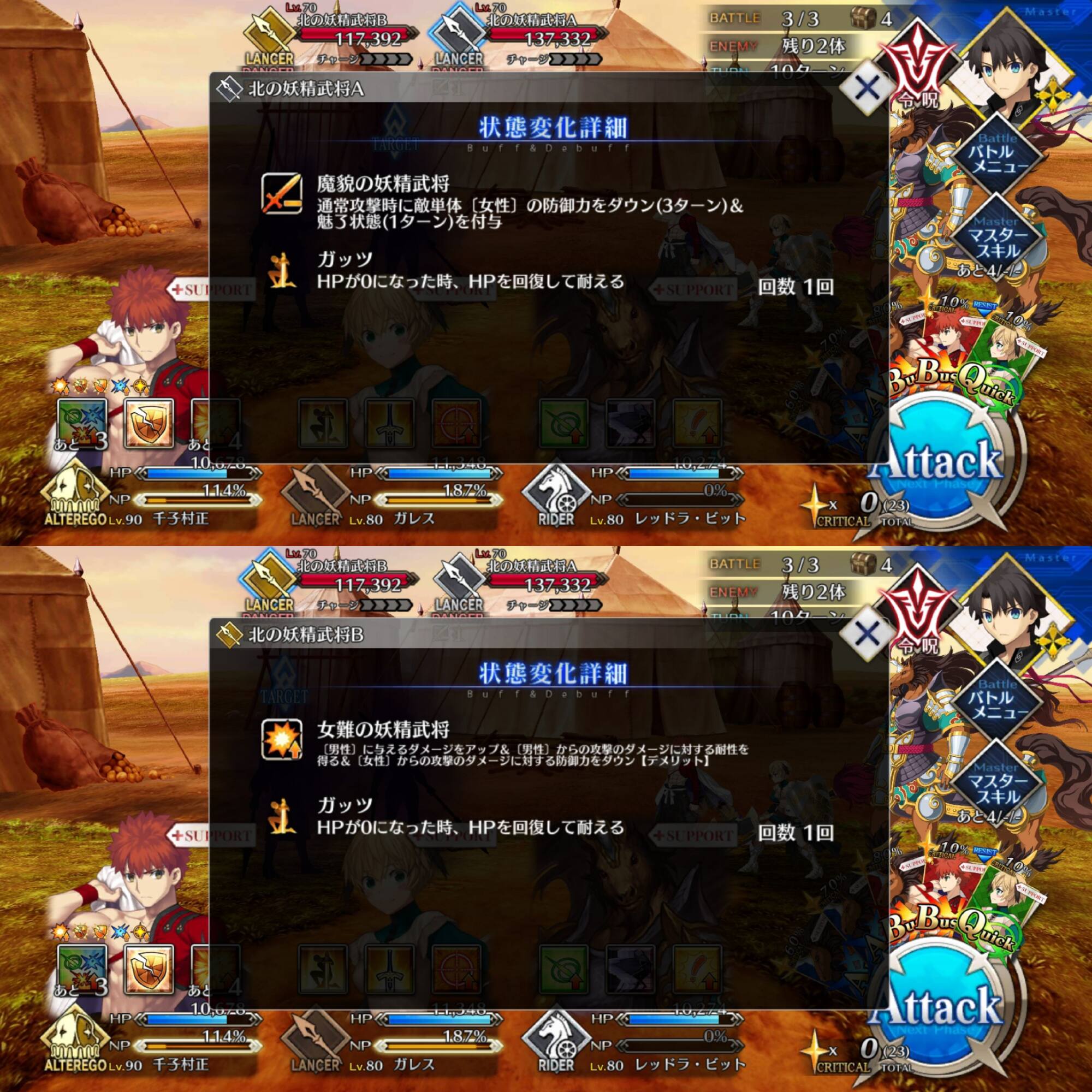 ・操作出来るのは藤丸のみ。(戦闘は基本的に鯖(NPC)頼り、自力では指示、令呪、逃げる等)