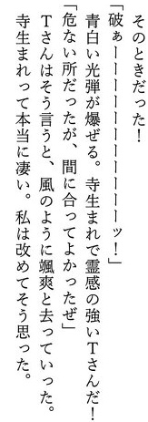 その時点で彼らは超能力という異能を有する一族ではなく、ヒトの持つ退魔意志を特出継承する特異な一族と成り果てた。