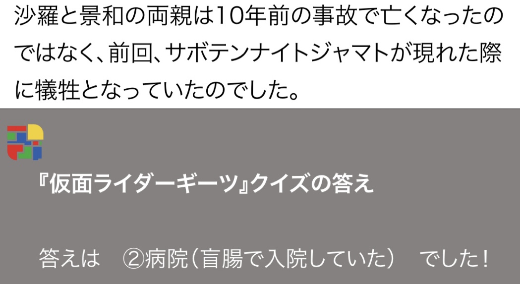 ・景和と姉の両親はやはりかつてのサボテンナイトジャマトが現れた時に犠牲になってた。だから生き返ってない