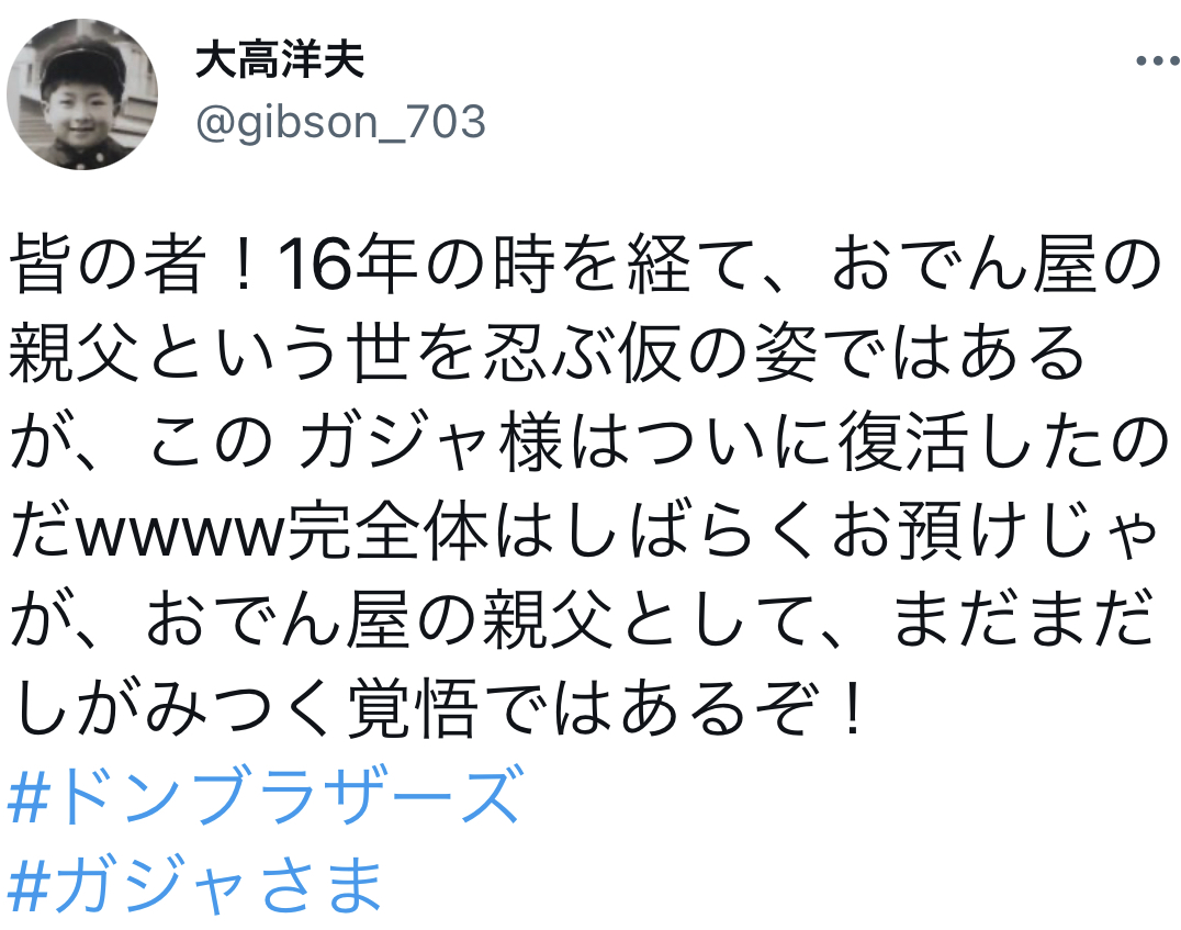 まあ、完全にこれっきりってことはまずないと思うが……https://twitter.com/gibson_703/status/1584020267697045504