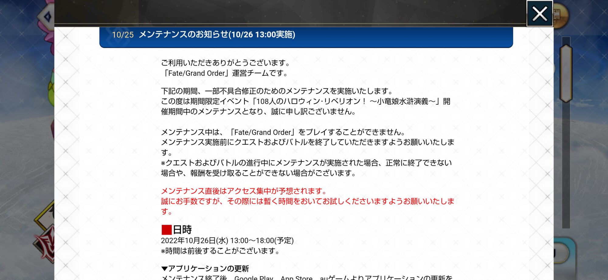 R18関連話題、よくてよ無しのガチャ結果、実装から二週間以内のシナリオ及び開催期間中のイベント内容、進行度依存の報酬、最終再臨や霊衣解放の画像や話題は専用スレにてお願いします。