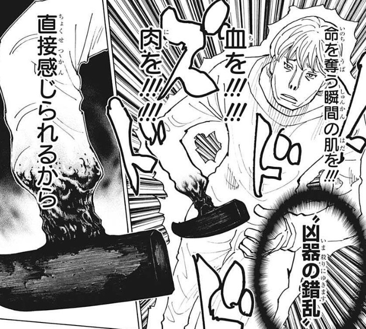 へ…へーそうやってお団子潰すんだー(釘バットから目をそらしながら)