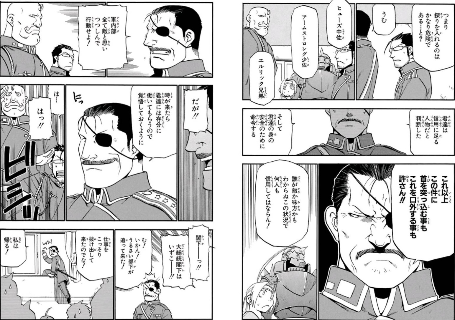 って互いに具体的な話をしたりマスタングから話を振ったのにうまくノッて暗号の重要部分である名前を話す辺りが二人の息が合ってるのよ>>18