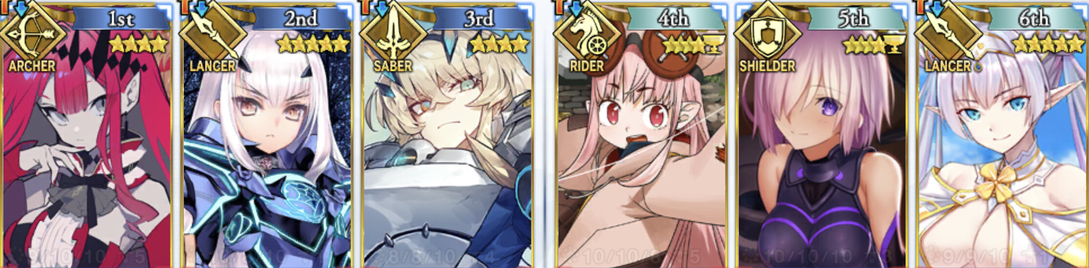 こうして一覧でみるとLINEスタンプみたいな構図がちょいちょいあるなぬわぁあ同じ推しをサポに入れてる人を野良で見かけたからバトル終わったら申請しようと思ったのに手癖でフレ申請飛ばしちゃったアァアア