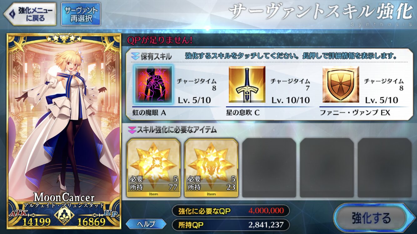 宝具重ねたい気持ちもあるけど石がなさすぎるから我慢する