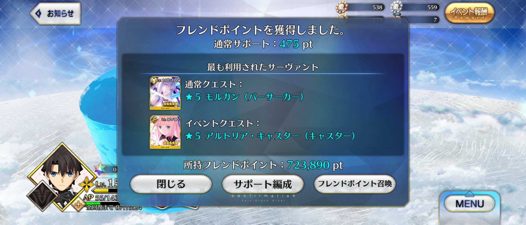 モルガン陛下の礼装嬉しい! 嬉しいけど星3礼装はどれかマッスルバレット来いや!