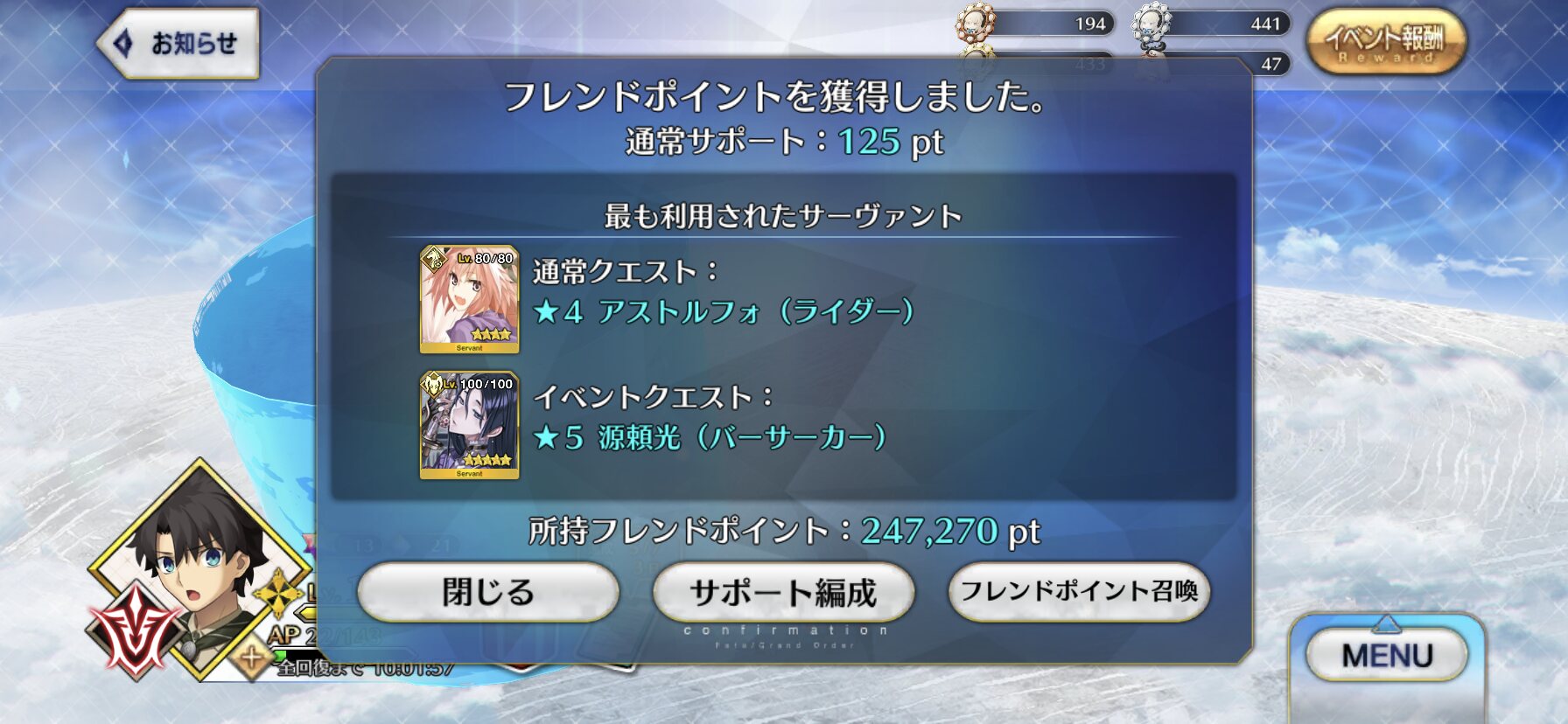 新しいサーヴァントを召喚した時はレアリティ関係なくロックやセレクトを確認したりかけておくと良いぞ!