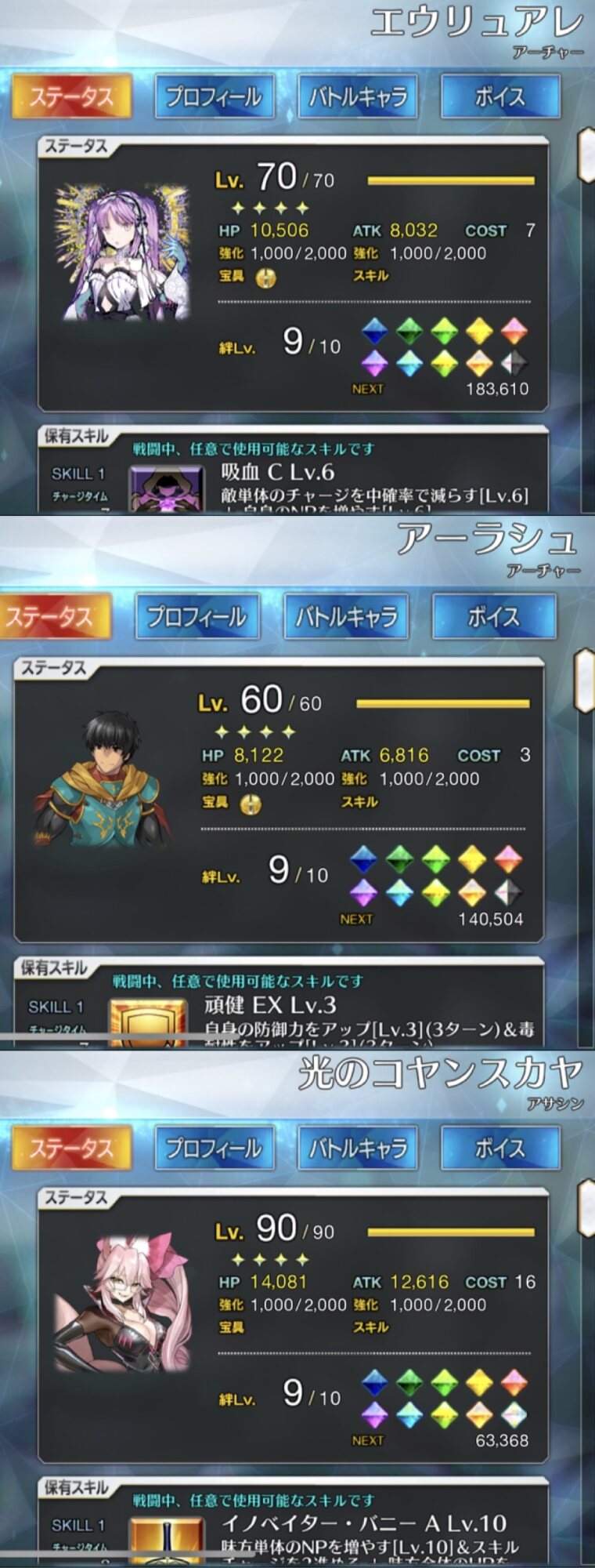 それがですね、ぼちぼちボックス開けて種火の処理の為に育ててなかった低レアを育成してたんですよ