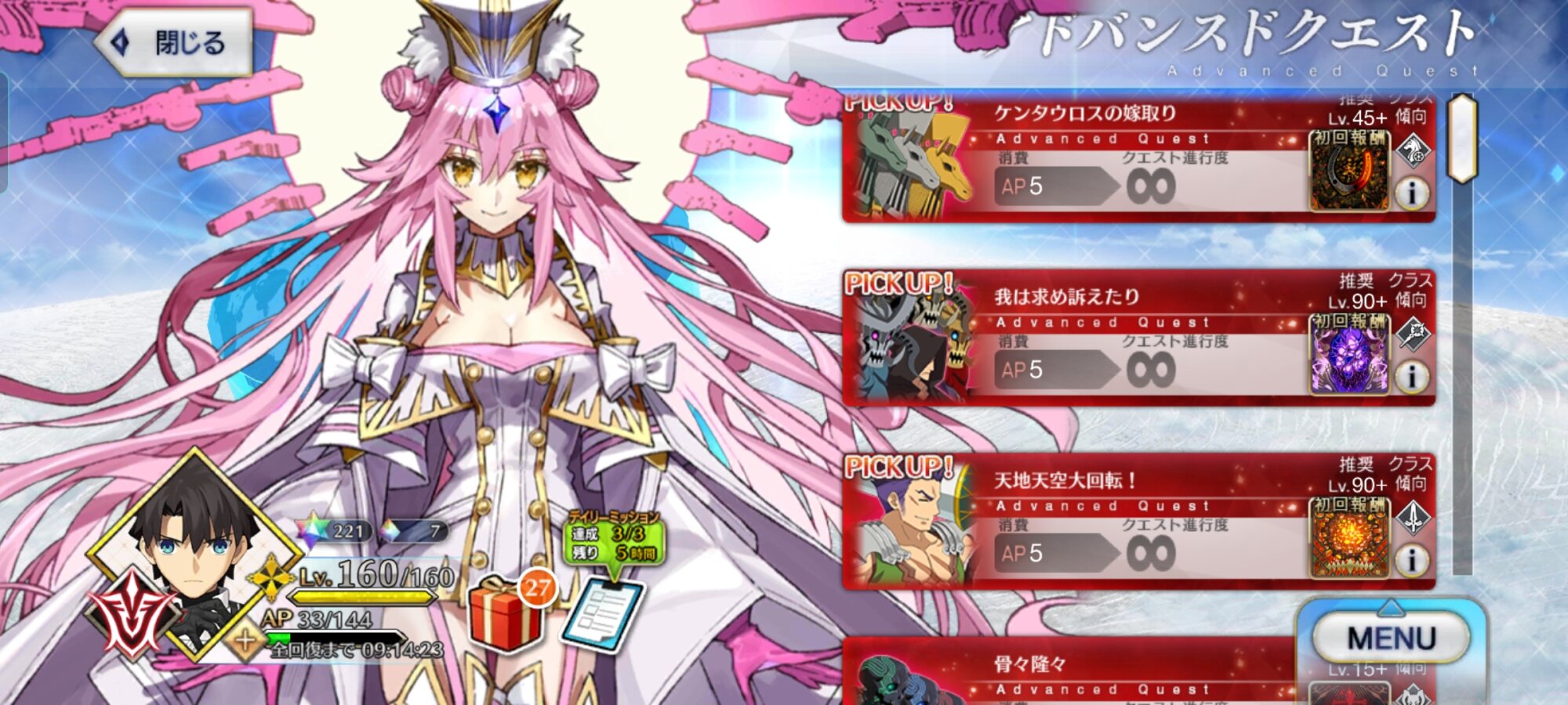 どうせ回るんなら新宿駅 、新宿四丁目、新宿御苑の初クリアは消化しておくと良いぞ。トラオムに出てきたサーヴァントみんな素材重い説