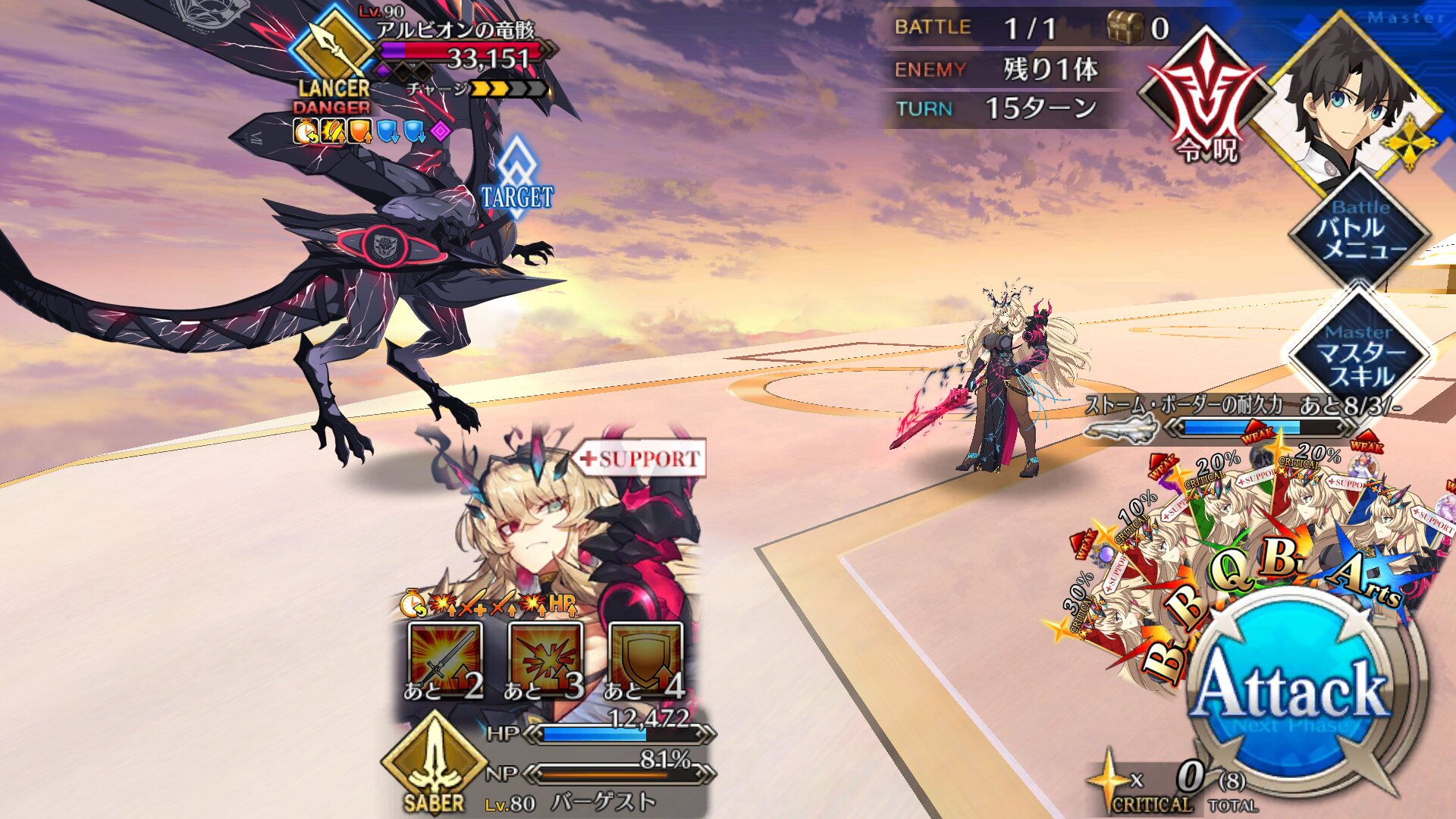 ジャンヌオルタの言う通りに、まぁ病気なのよね彼女・・・今回の超高難易度ではLAの強さを再認識したな……そりゃアーツ版マーリンが弱いわけないんだけども。