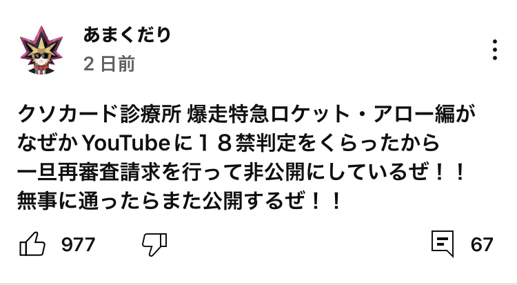えったまに聞く名前だけど遊戯王のキャラだったのか>>71
