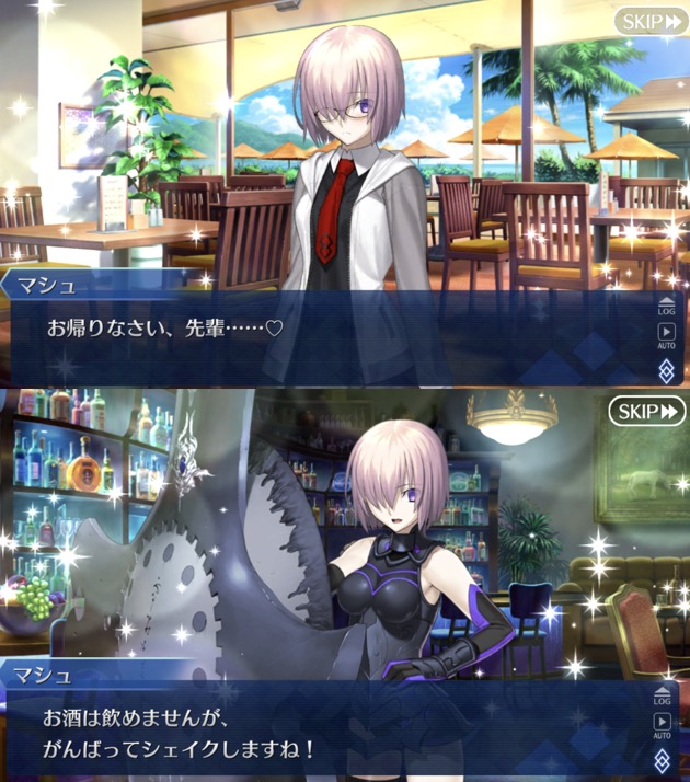 そういえば、マシュは断章だと戦闘には参加できない状態だったか。何が原因でセーフティにかかったらしいけど水着の上に上着を羽織ってるあの姿が一番良い。
