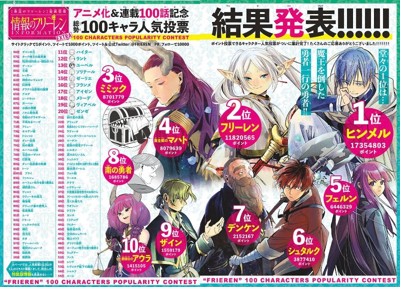 屋根裏のゴミと化すデンジかあ……いや無理だなデンジにあの真似は出来んわ(横に女侍らせながら、違う女に部屋の掃除をさせてるジョーカーを見ながら)フリーレン人気投票きてるがヒンメル強すぎるな