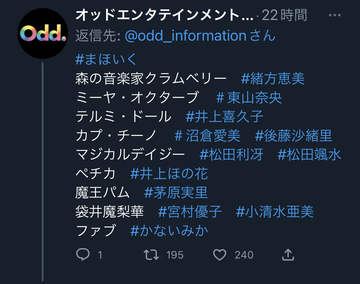 この前の公式生放送で、凄い爪痕残した魔球さんw結果的にナイスサポーターだったのも笑うし、明らかに泥酔してたのも笑うw他人が予測しにくく自分は忘れないって難しい