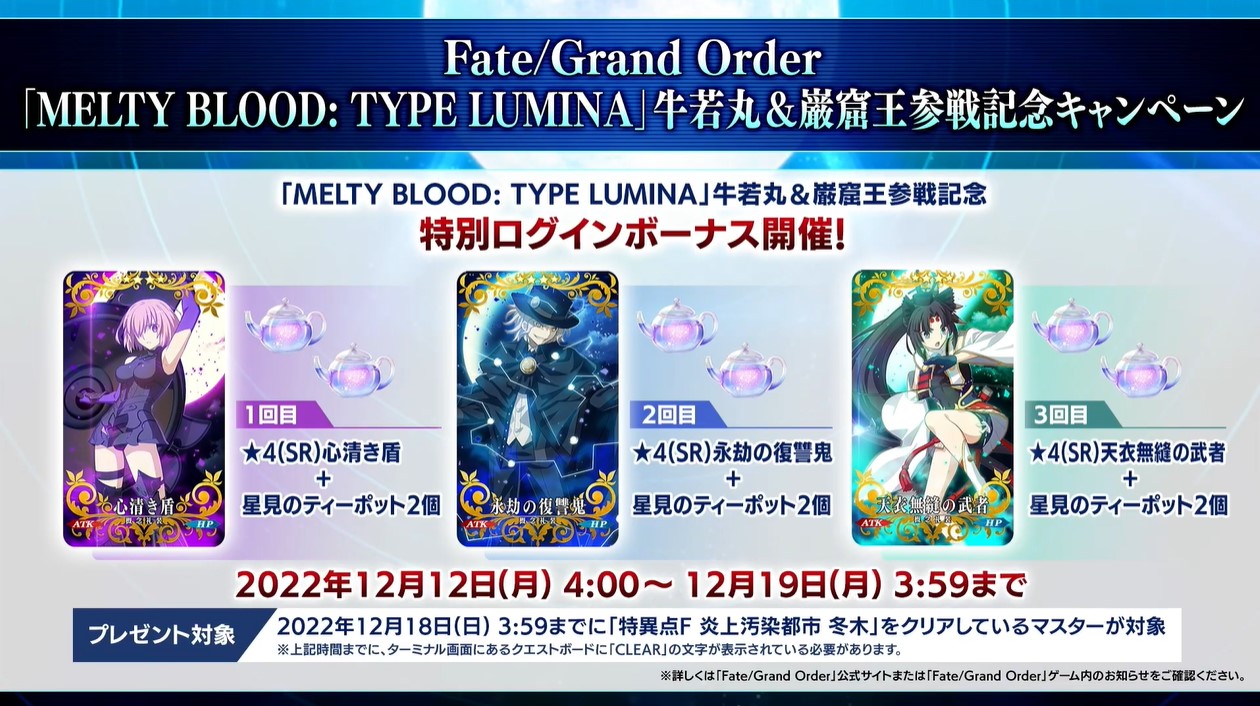 R18関連話題、よくてよ無しのガチャ結果、実装から二週間以内のシナリオ及び開催期間中のイベント内容、進行度依存の報酬、最終再臨や霊衣解放の画像や話題は専用スレにてお願いします。