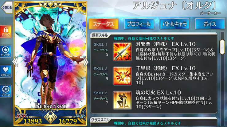 カード構成はBA2Q1のスタンダードな形。NP効率、hit数共に並だけど後述するスキルで恒常的にクリティカルを狙えるので体感だとカード性能、火力はかなり高く感じるわね
