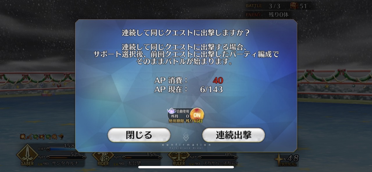 スキル3発動!(クリティカル威力↑+毎ターンスター獲得)