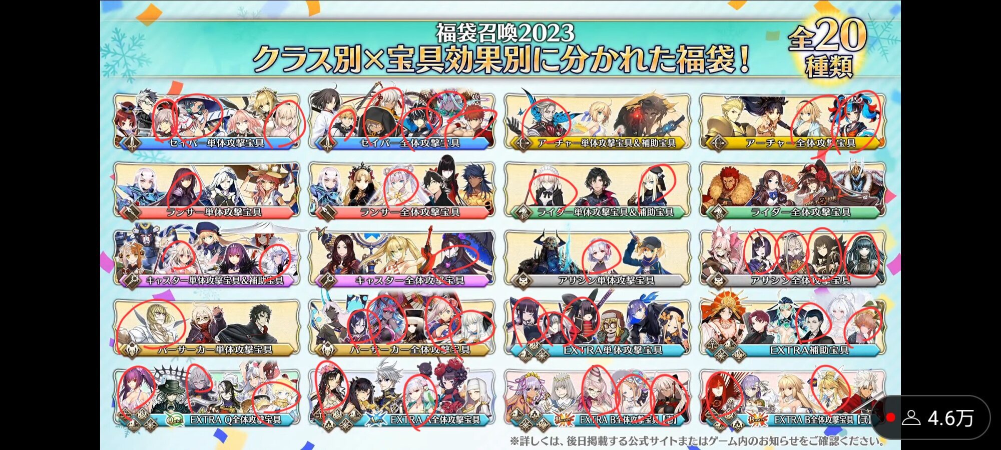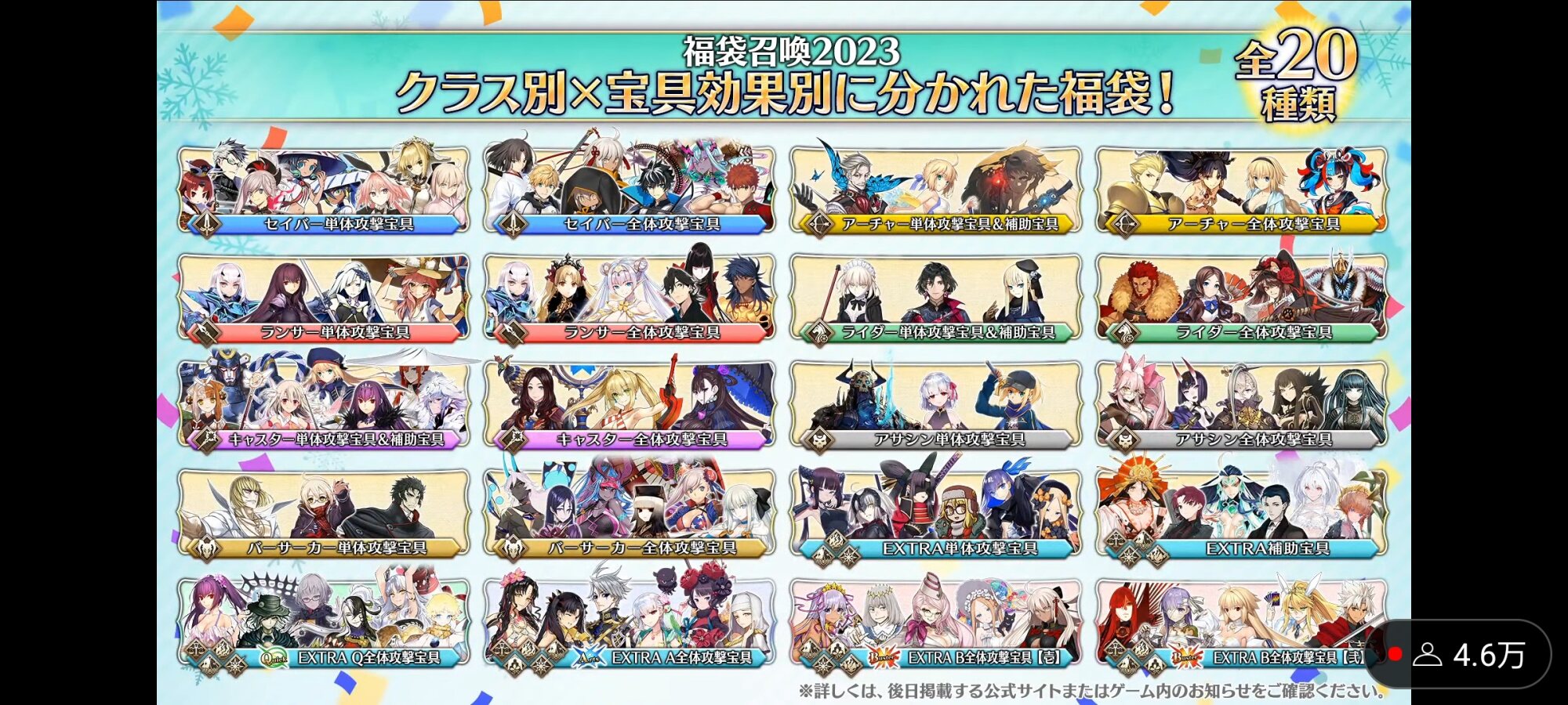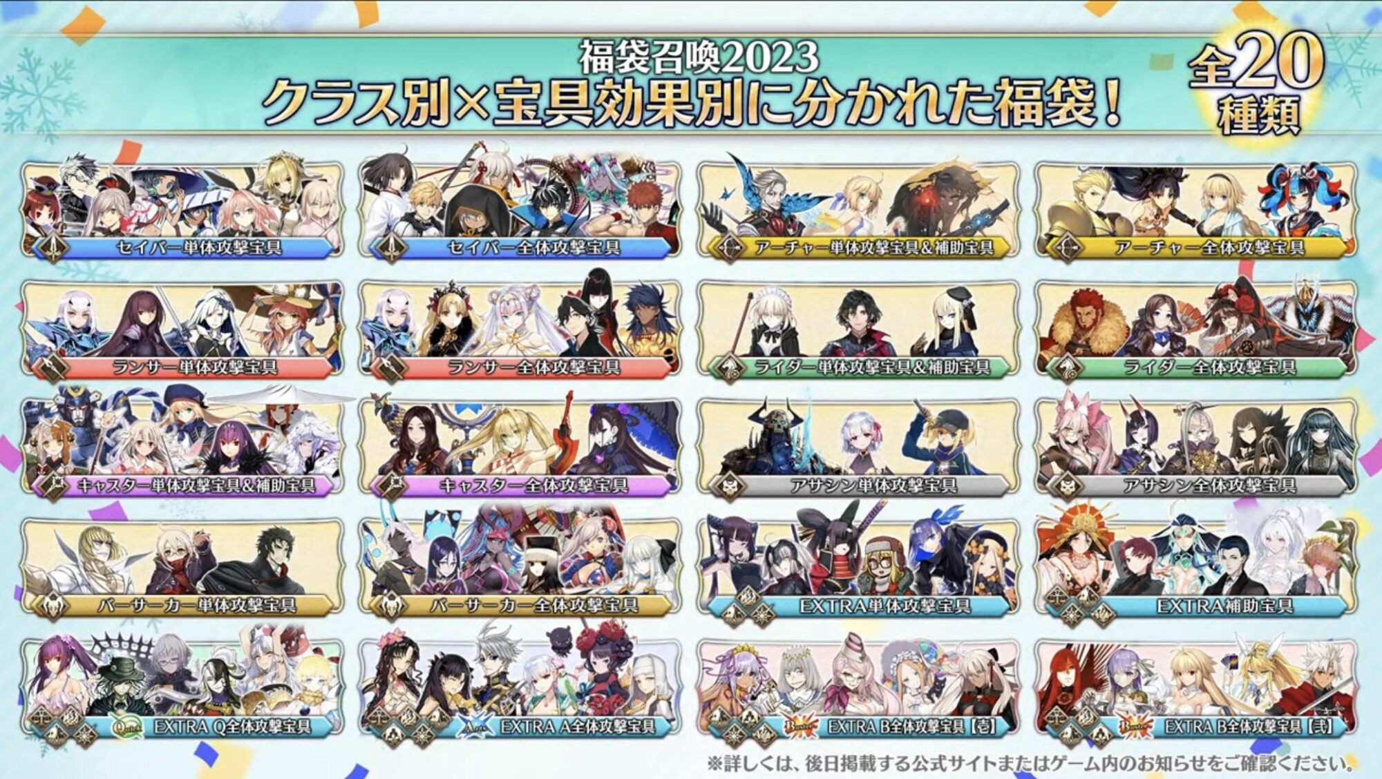 真面目にそこがネックだよね……術単体ってまあまあレアだからアリっちゃありなんだけど、補助宝具のメンバーが全員有能だからなあ……これだけ細分化してもそれぞれ三人以上居る様な分け方出来る様になるくらい鯖増えたんだなぁって感慨深くなる