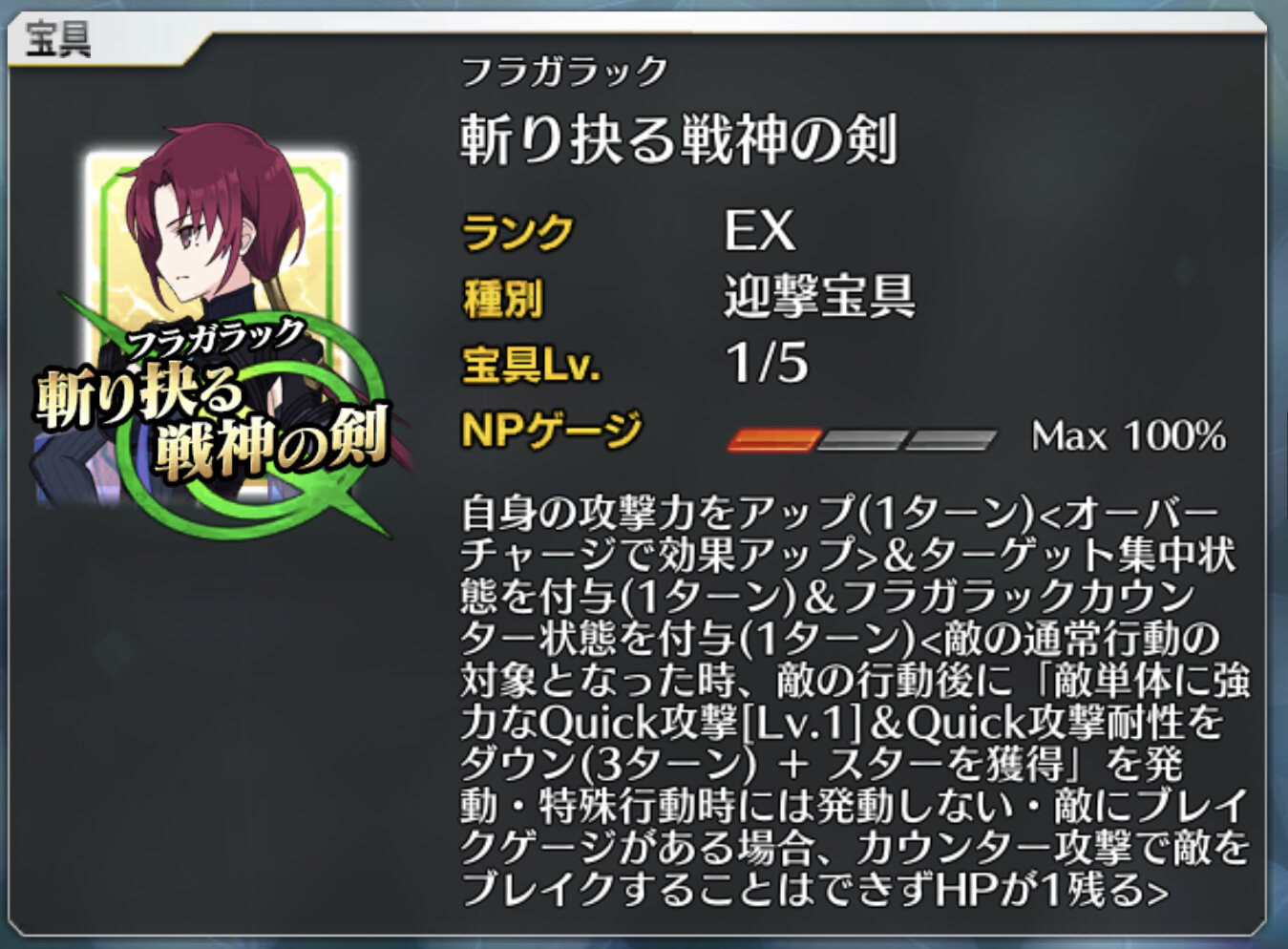 天賦の叡智みたいに”さまざまな効果を付与”みたいなふわっふわのテキストだと困るから致し方なし狙うなら一番未所持が多いEX補助枠……けど、被った時のダメージがデカいなぁ。補助宝具の宝具レベルって上がってもあまりうれしくないからな……