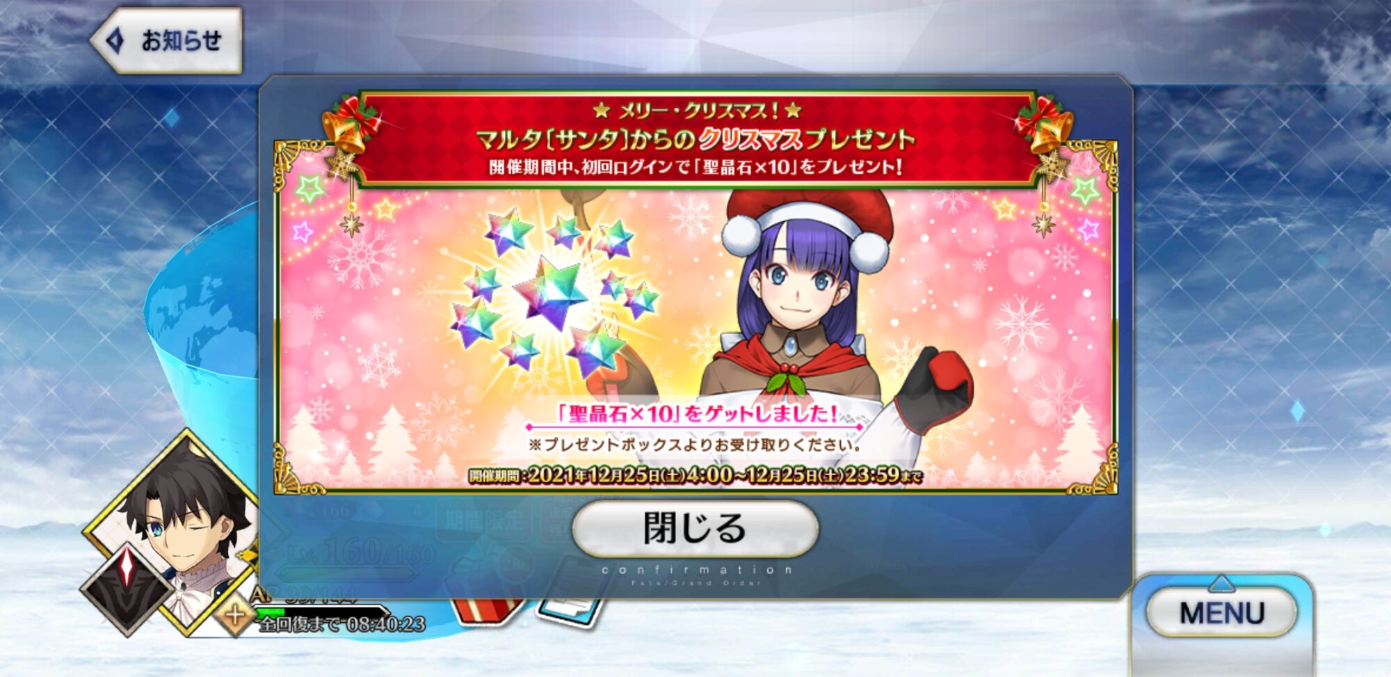 お茶ください!(こないだの90++で飲み干しッターマン)去年の正月の礼装は不意打ちで遺影礼装並みのを叩きつけられて驚いたよね…