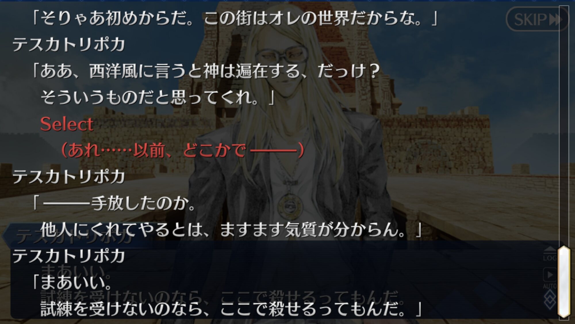 あとなんかこのテスカが敵対中のテスカと同一かはわからないけどぐだの事は気に入ってそうな気がする>>26