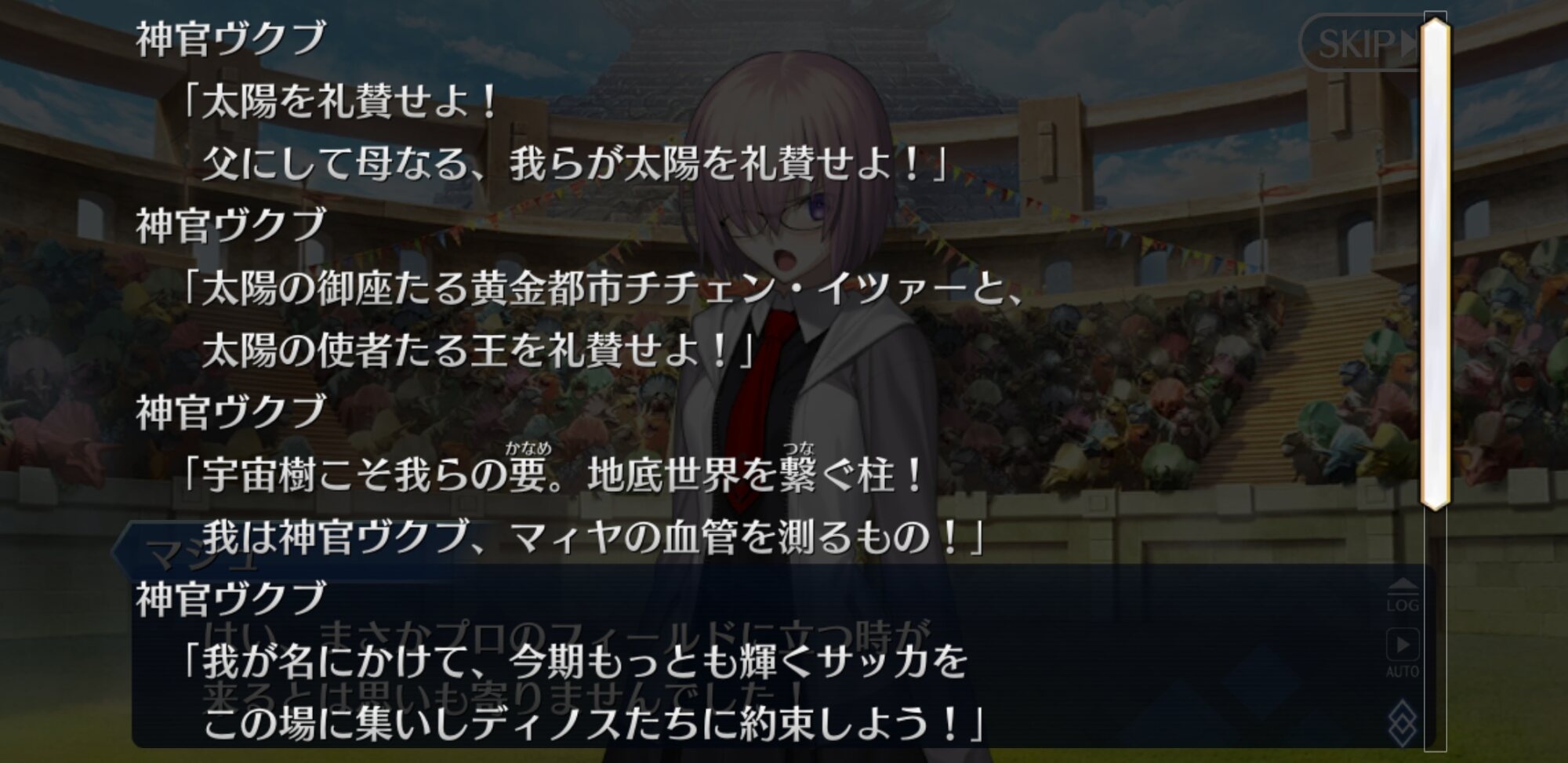 異星=地球の疑似天体説ンンン、来(きた)る最後の異聞帯南米はナウイ・ミクトラン!編纂異聞問わず濃密な神秘溢るるここ地下冥界でサッカ(玉遊び)等と、失礼。心根穏やかな恐竜人類の行楽であり大事な太陽礼賛の儀式でしたな。