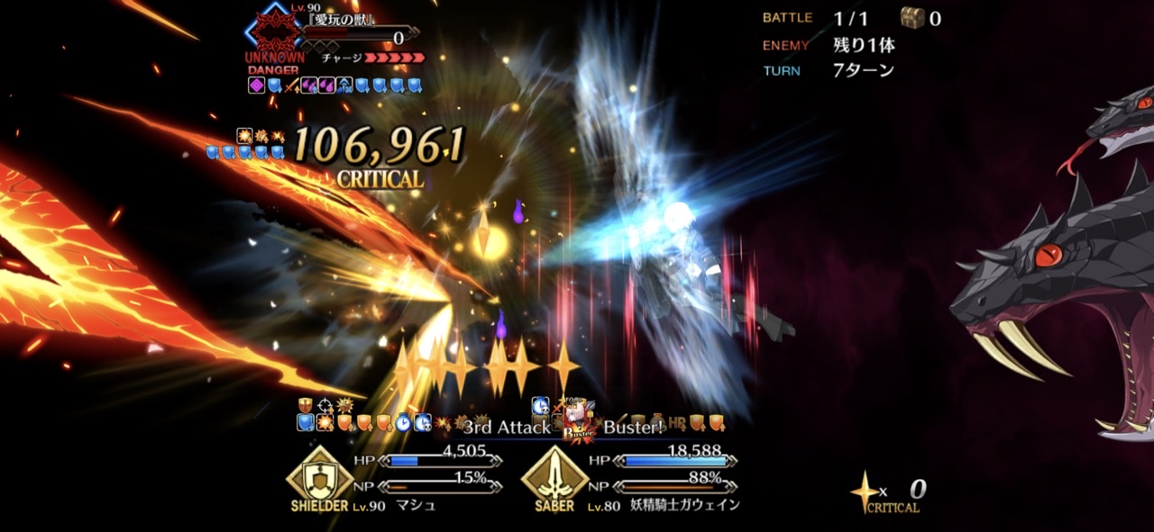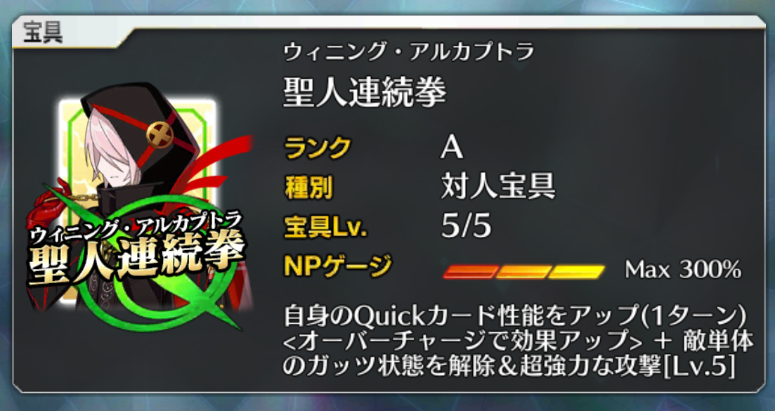 呼符の枚数がやさしー宝具2になればNPが100%以上溜まる。ごくごくまれにぶち当たる毎ターンNPを減らしてくるアンチクショウが相手でも安心感が増すんだよ。