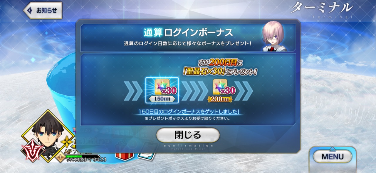 あとLv120になった時の特殊演出をマテリアルとかでもう一回見れるようにしてほしい