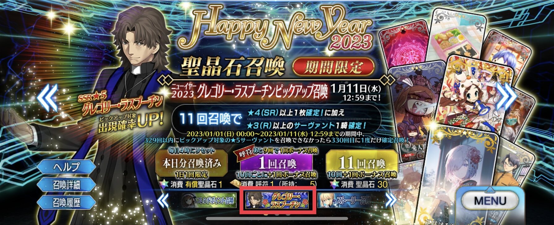久しぶりに銭湯行きたい(唐突)ラスプーチン召喚したらあけましておめでとうと言うらしいけど復刻してもあけおめ言うのかな