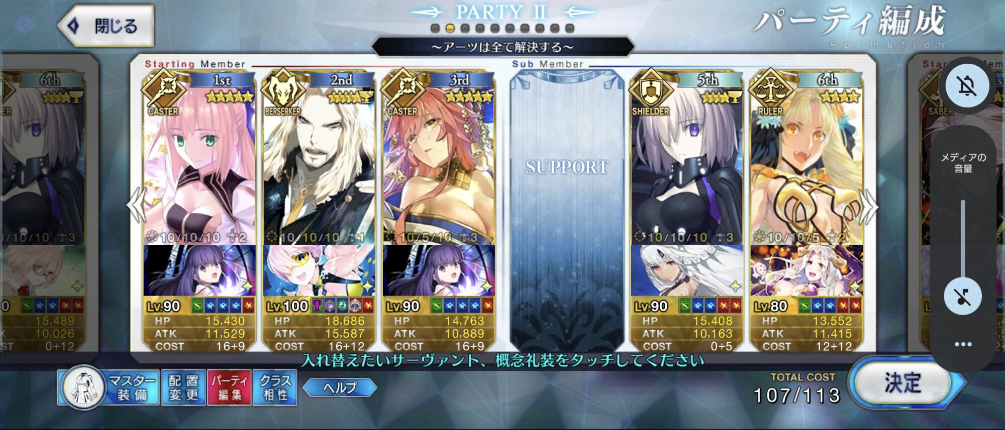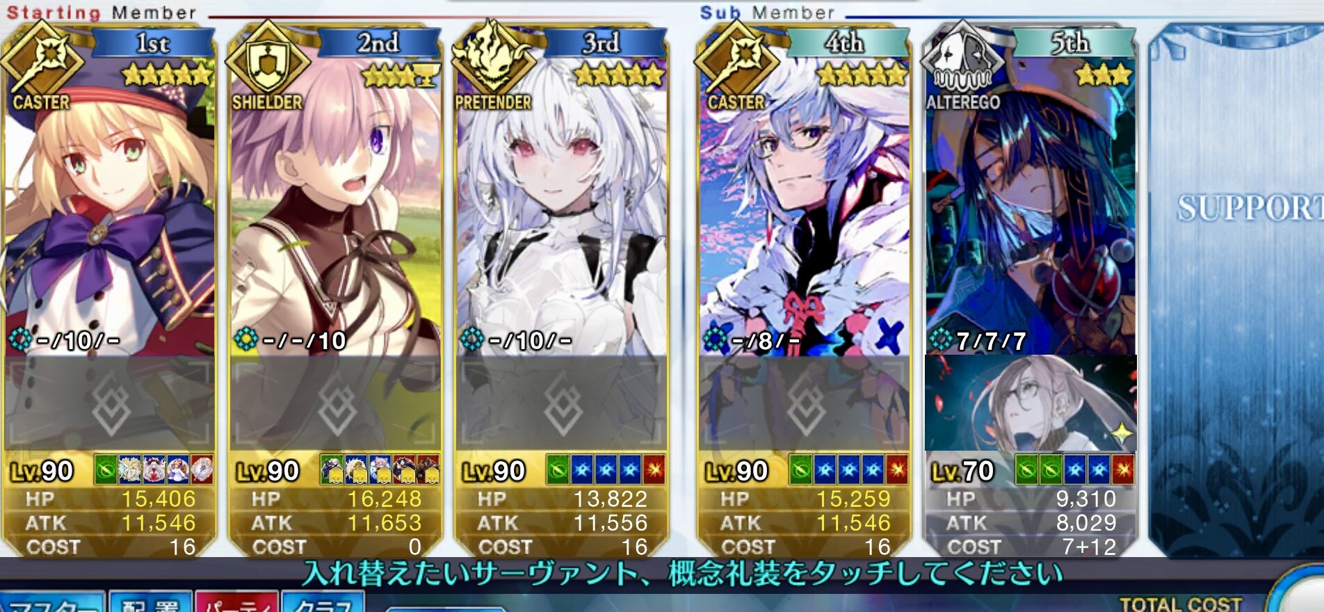 キャストリアが防ぎ、マーリンが回復し、スカディ様がネックとなる火力と即死をケアする