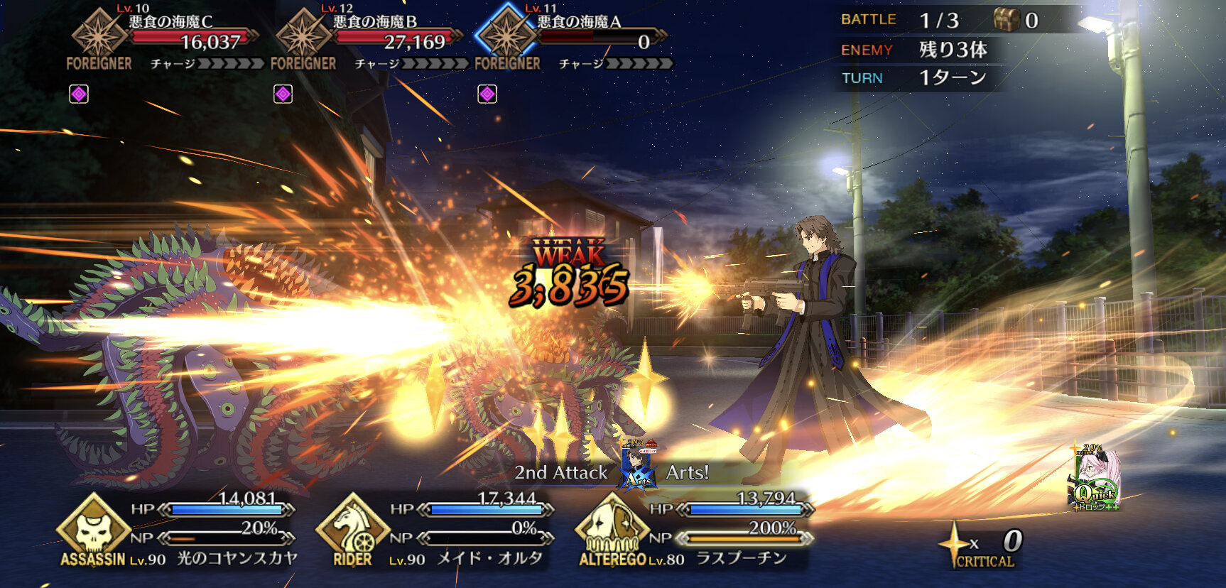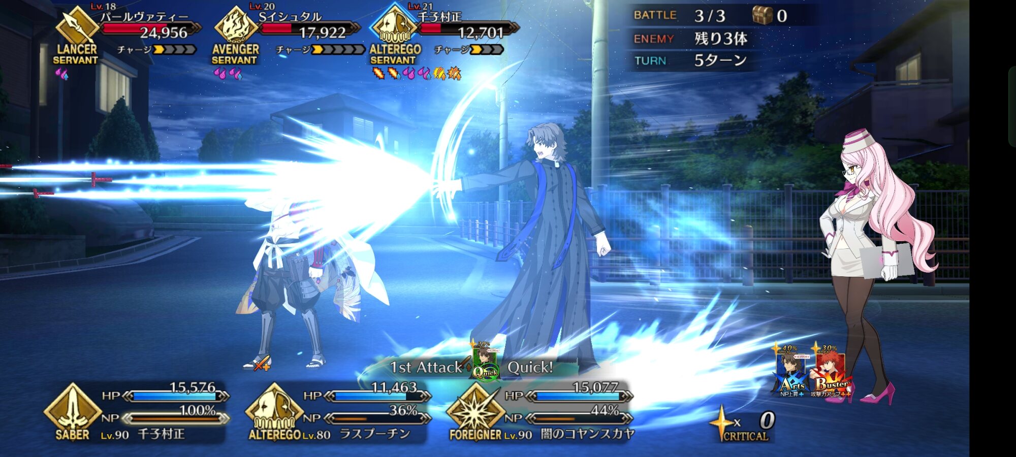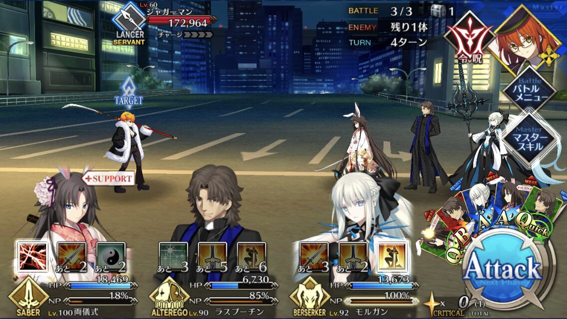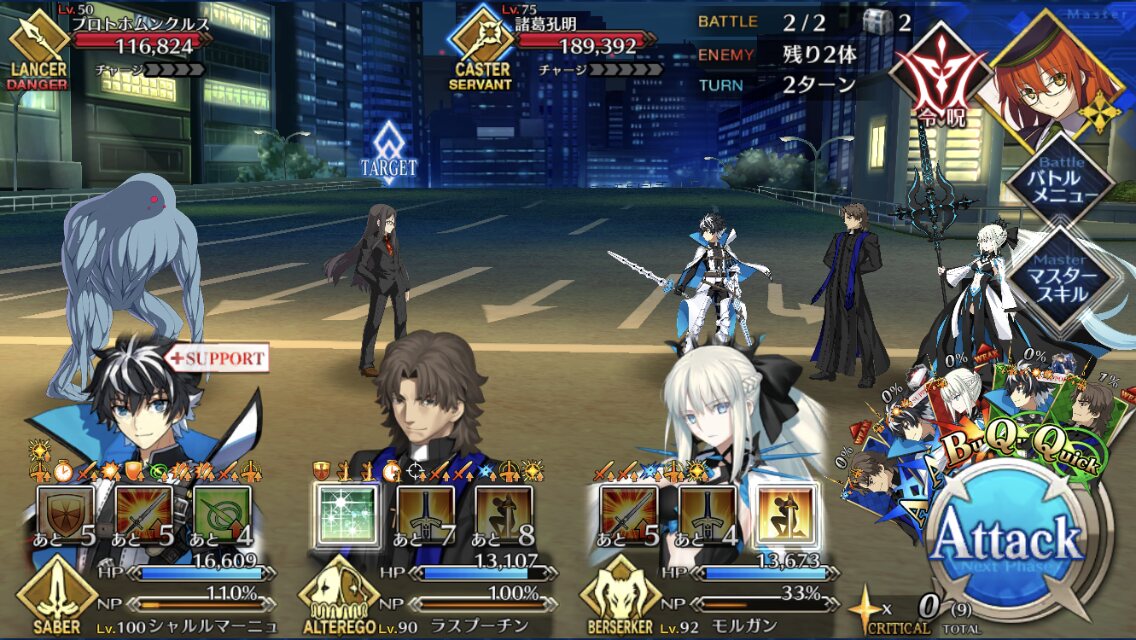 この時は強烈な宝具攻撃を防ぐためにオリオン、玉藻、孔明でひたすらチャージ減を狙う遅滞戦術が主でした>>42