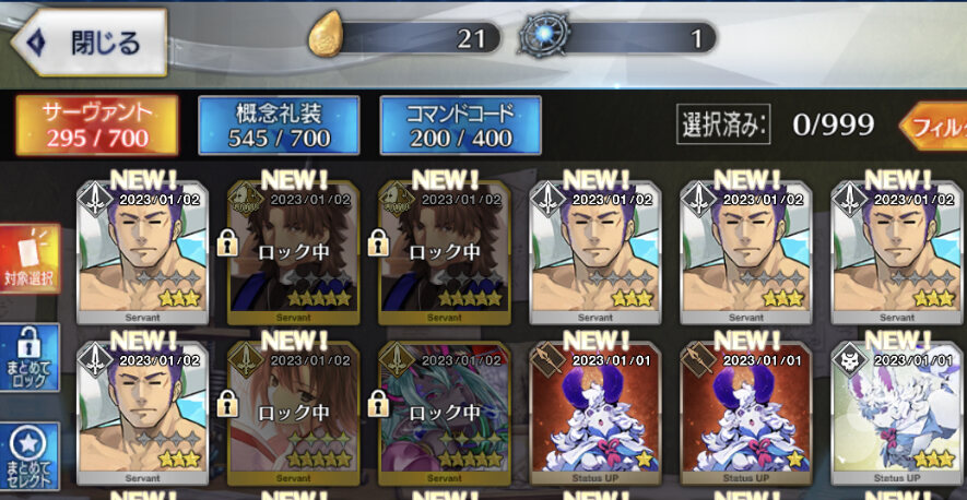 画面上では「今月あと1個鋳造可能(残り29日)」ってなっているんだけど、「奉納するサーヴァントコインを選択する」でサーヴァントを選択してもコインを捧げられなくなっているんだ。