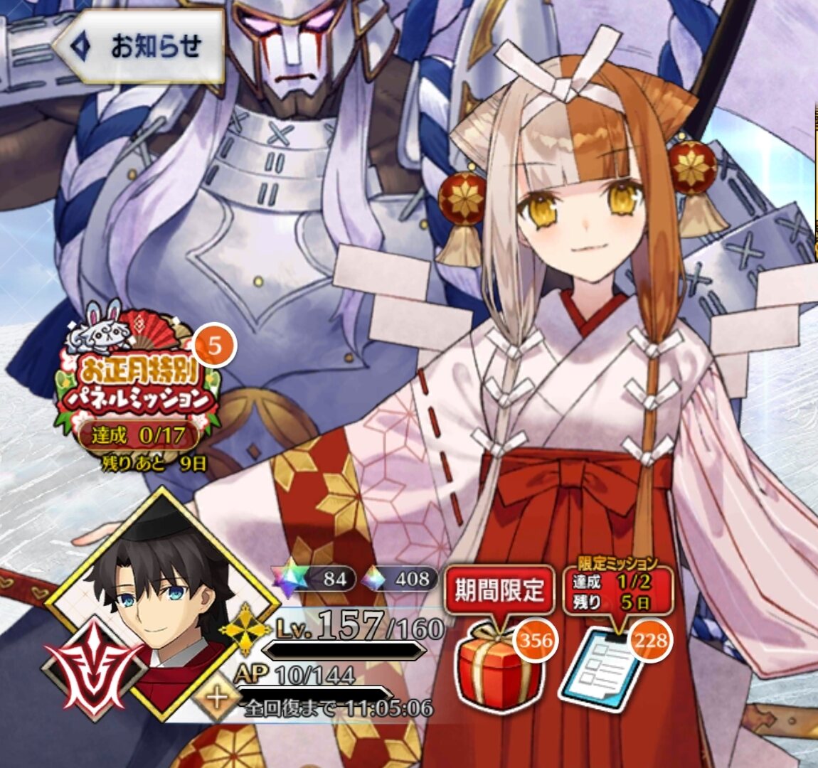 そしてぐだ男の場合は神主さん。神主さんと巫女さんがカルデアに揃うわけです。神主マスターと巫女さんサーヴァント!! 素晴らしい…。二人で一緒にカルデアのお正月を盛り上げていくわけです。もはや事実上ここは出雲大社の分社と呼んでも差し支えないのでは?
