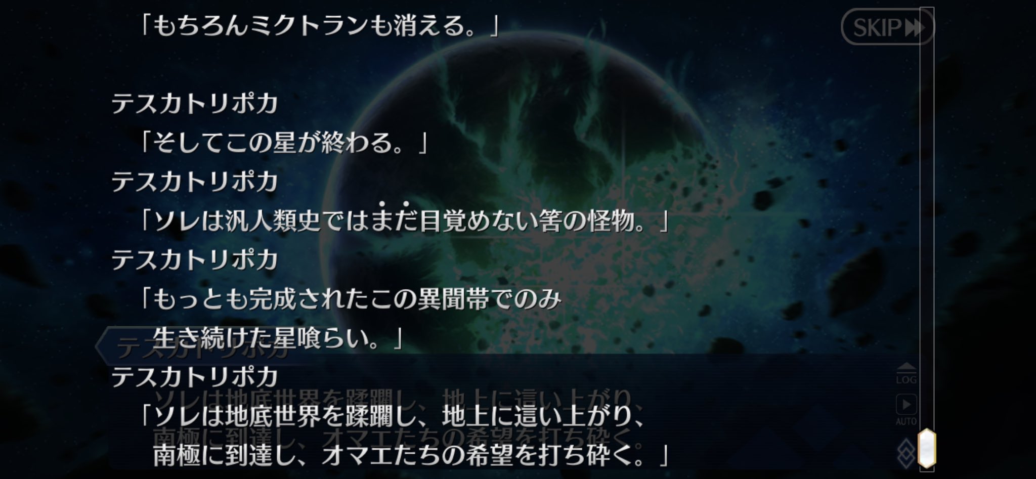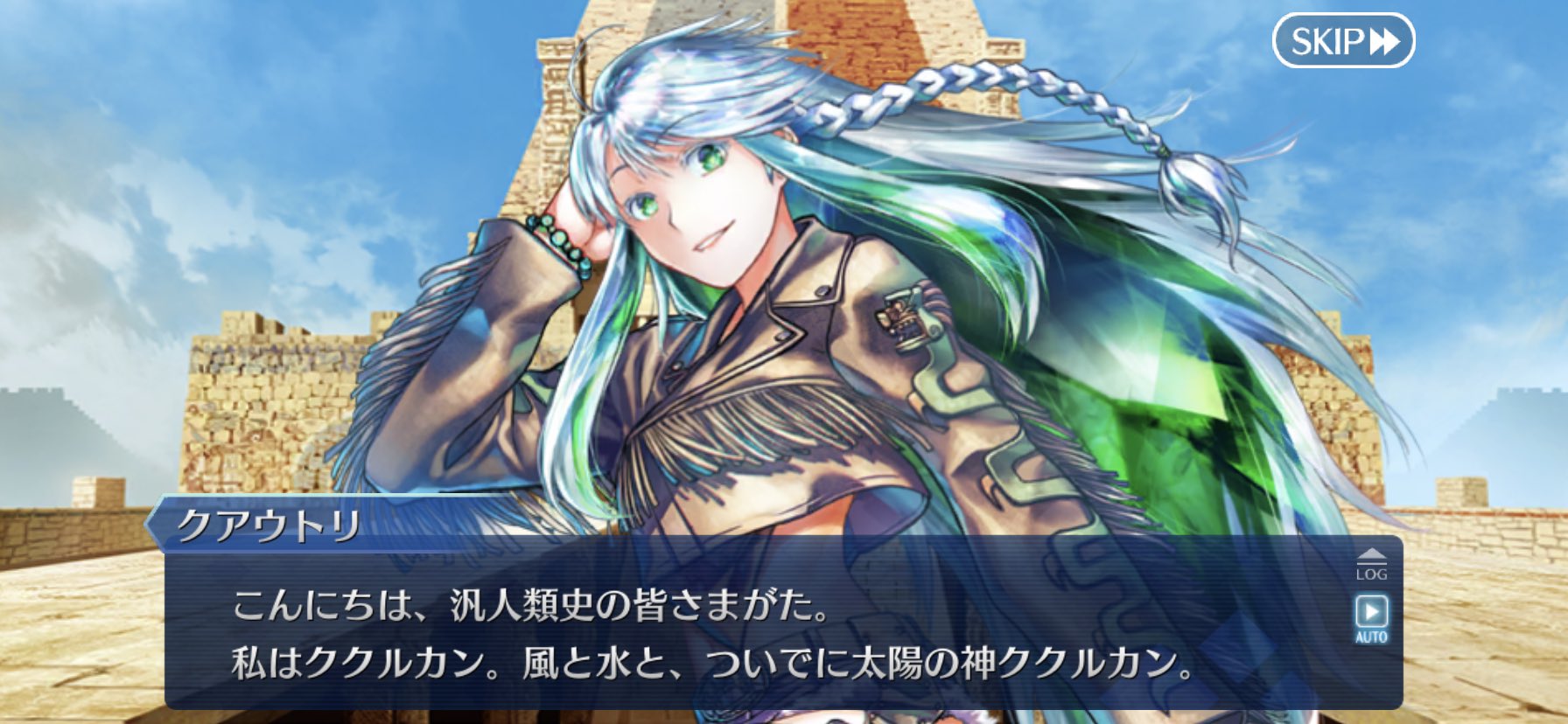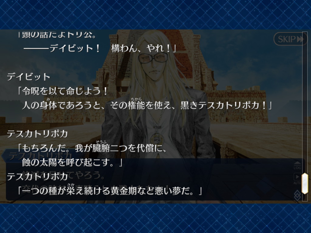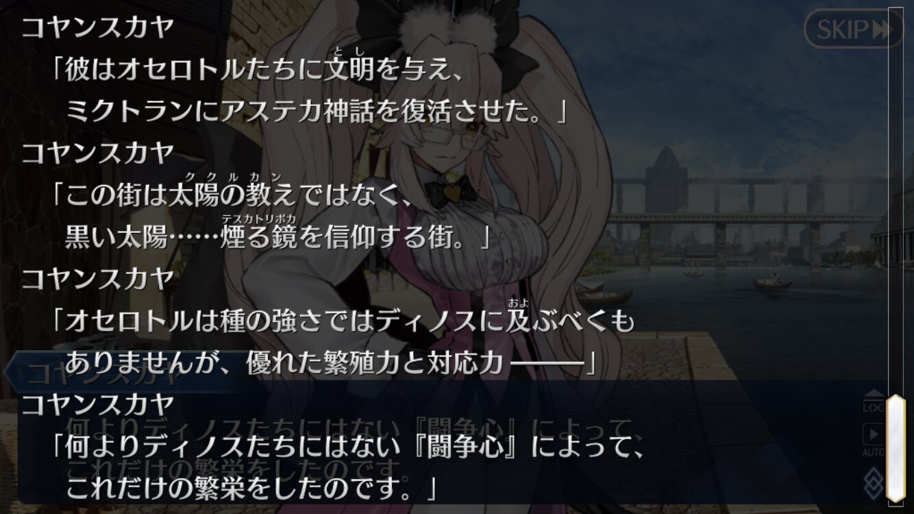 意図的だったらそのままだろうししかしまあ、今までの異聞帯の王ってのは己の居城からは基本的に動かなかったけど、南米異聞帯の王であるククルカン(あと、横入りの黒のテスカトリポカ)はフットワーク軽い!