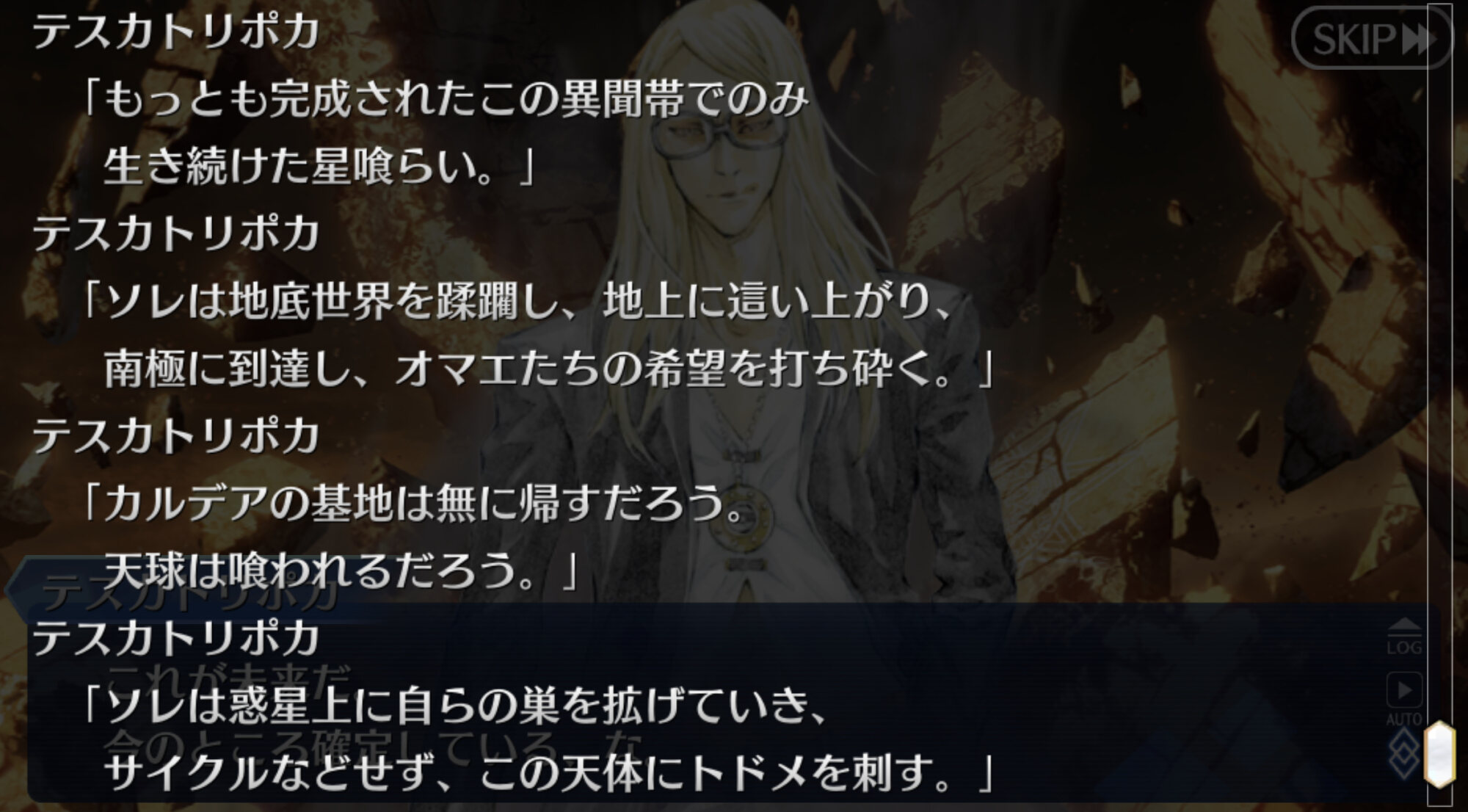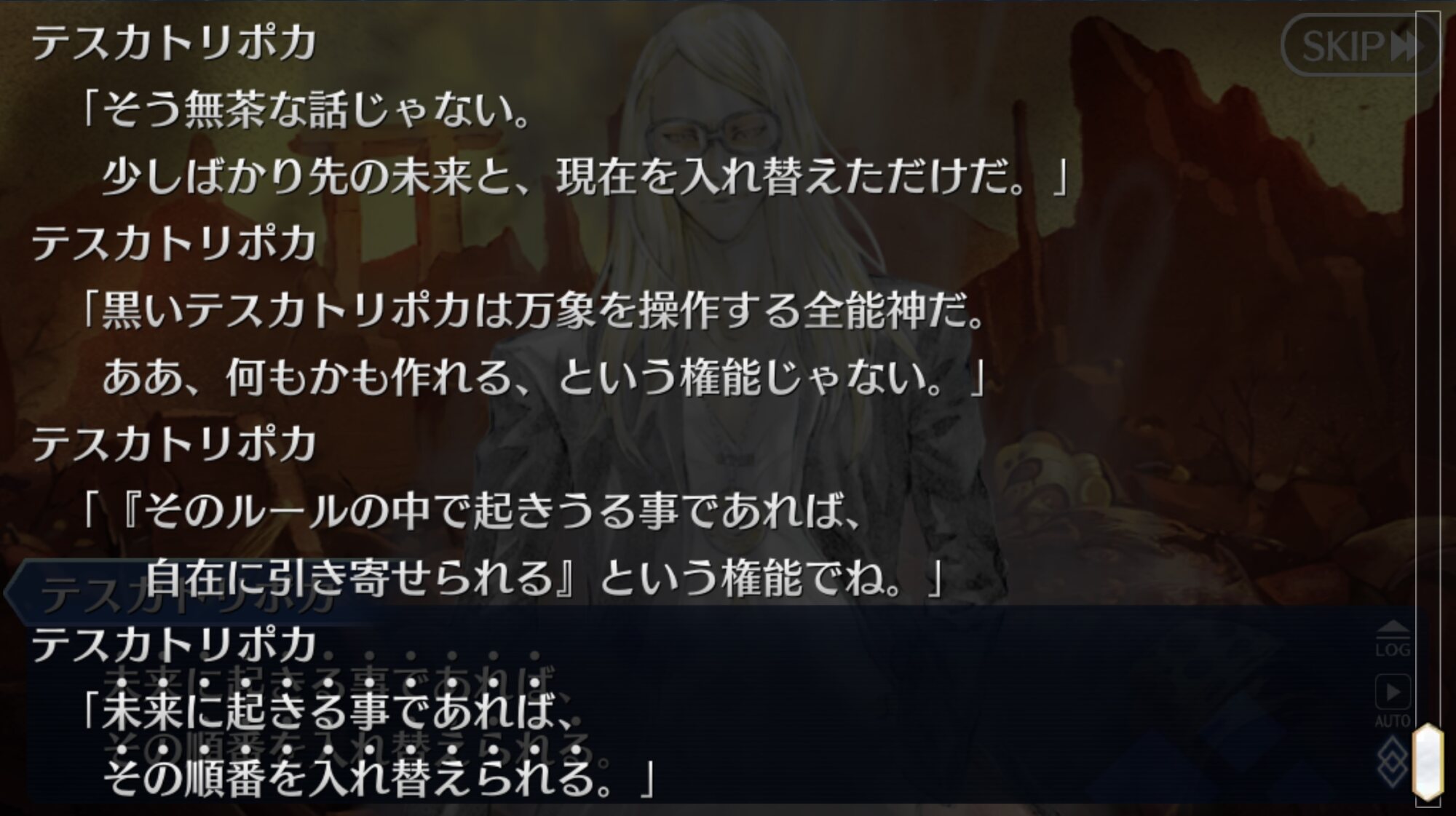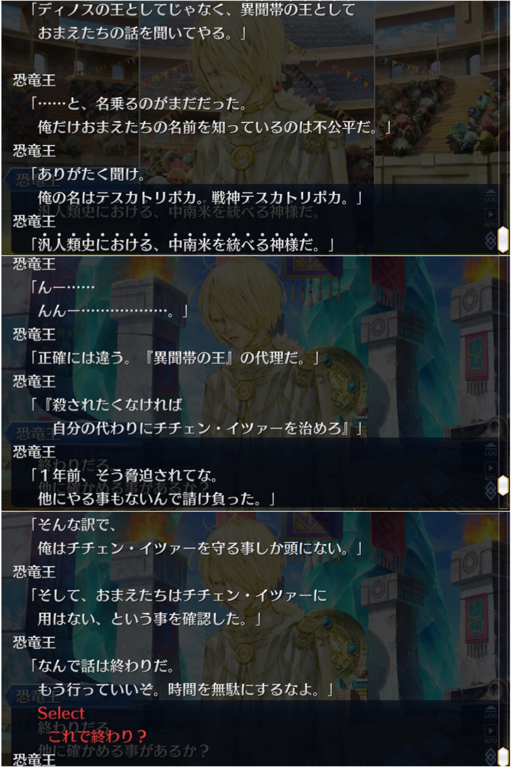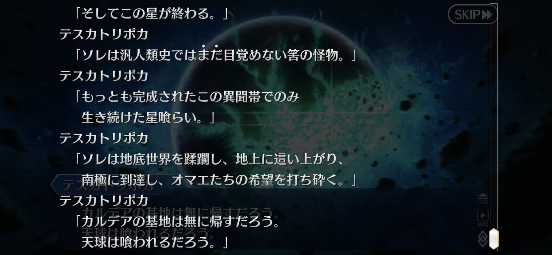 意図的だったらそのままだろうししかしまあ、今までの異聞帯の王ってのは己の居城からは基本的に動かなかったけど、南米異聞帯の王であるククルカン(あと、横入りの黒のテスカトリポカ)はフットワーク軽い!