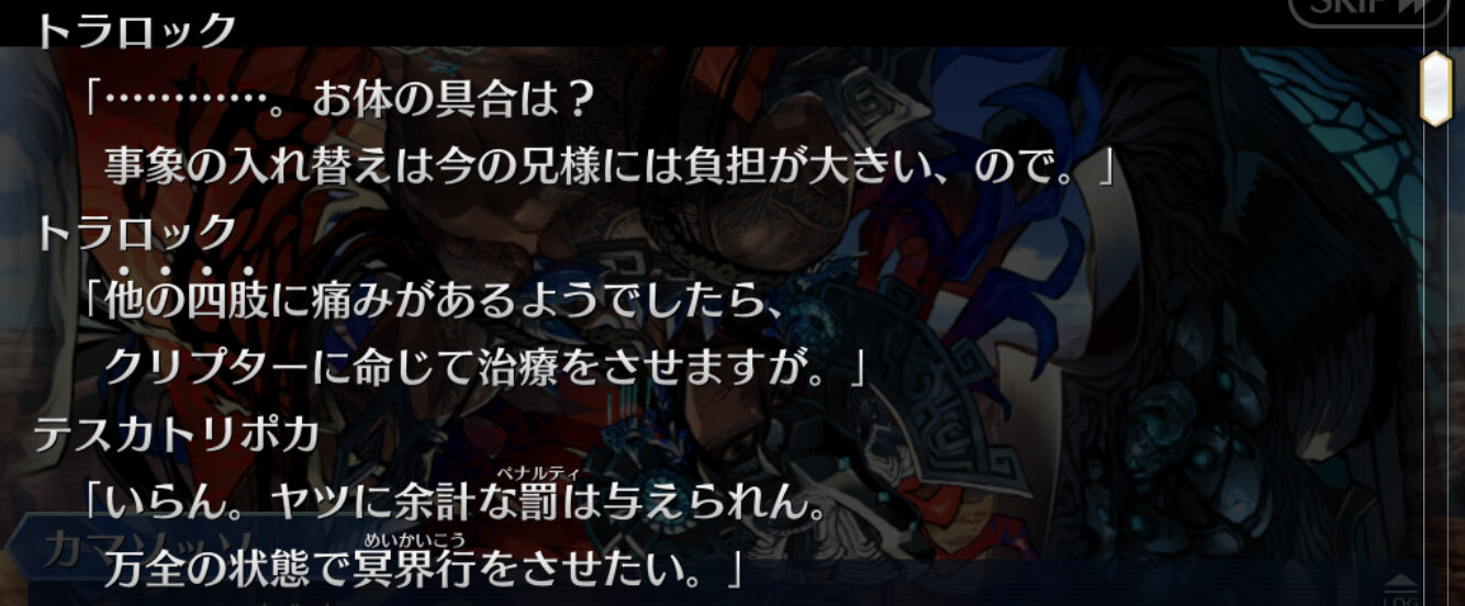 ORTにやられたってことなのかな?カルデアと一番接触する現地民枠で精神年齢が一番高いのは90歳相当のテペウかもね