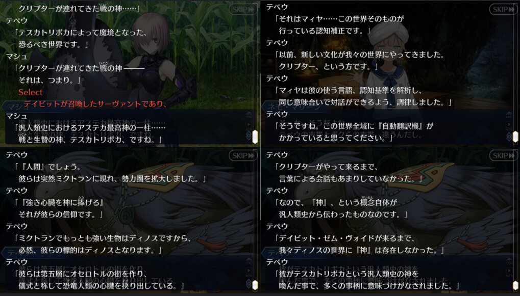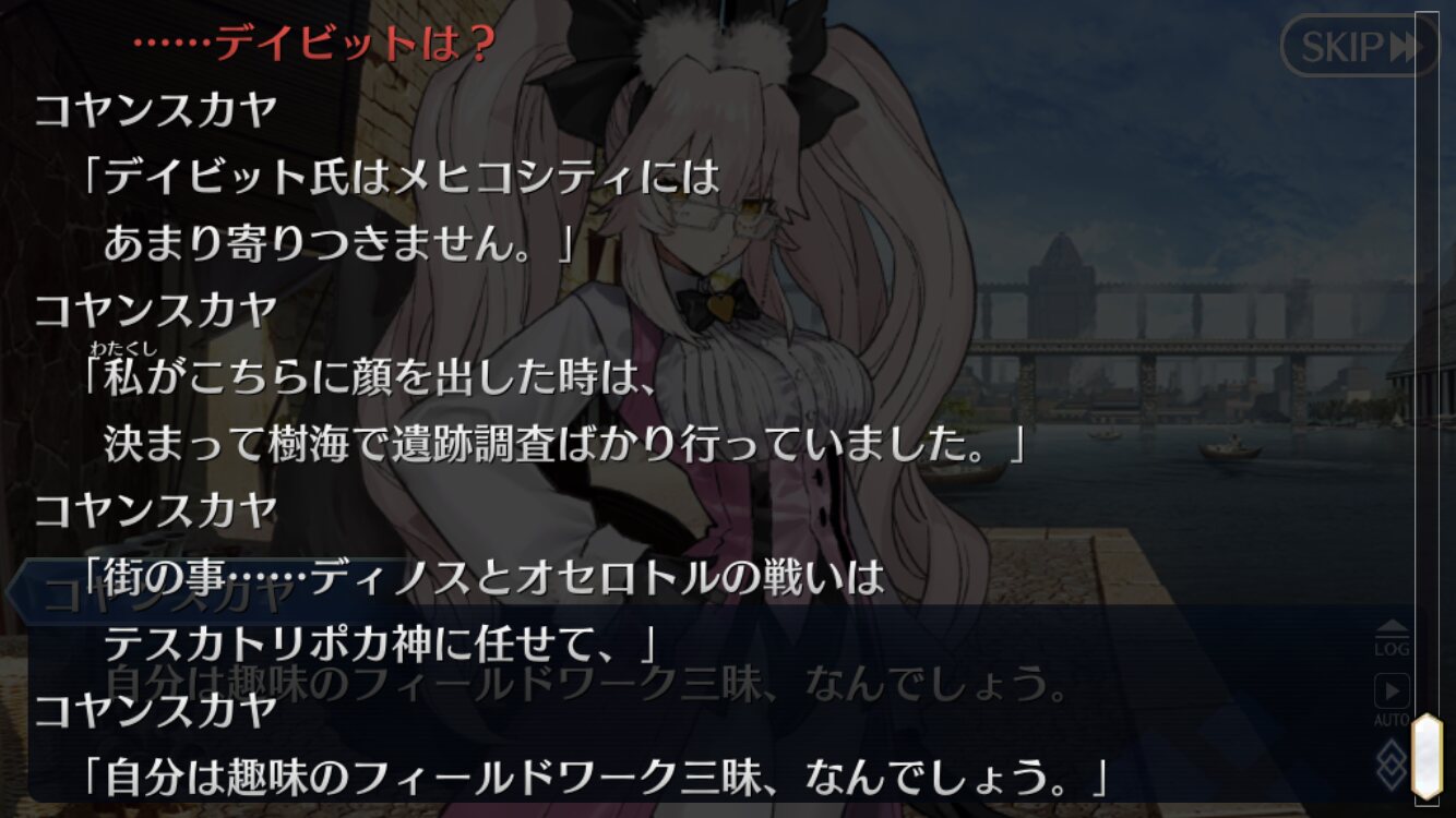 事件簿の世界とFGO世界でオルガマリーの魔術的な才能が違うのはここら辺に関わってくるかなデイビットが来てからマィヤの認知補正で汎人類史の人間との会話が可能なったらしいけどオセロトルとの会話は不可なんだよね。