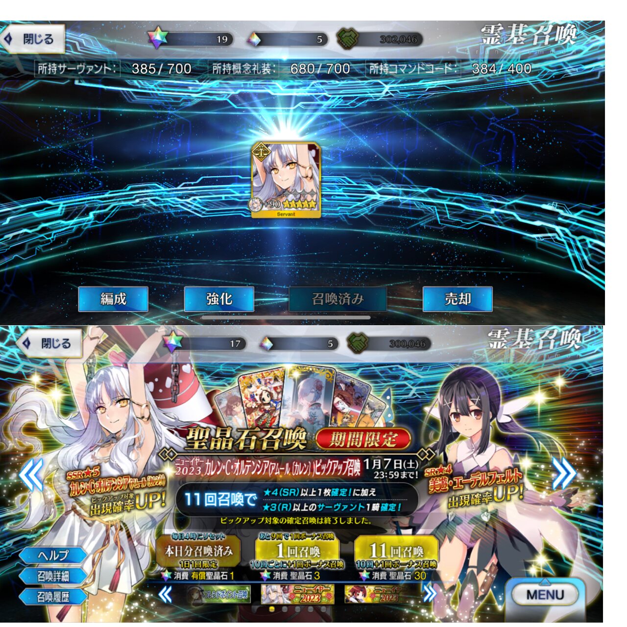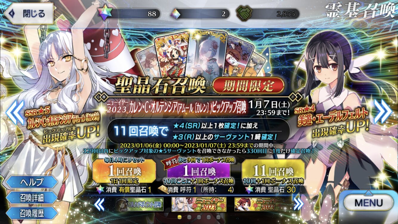カレンガチャで10連一回やるので