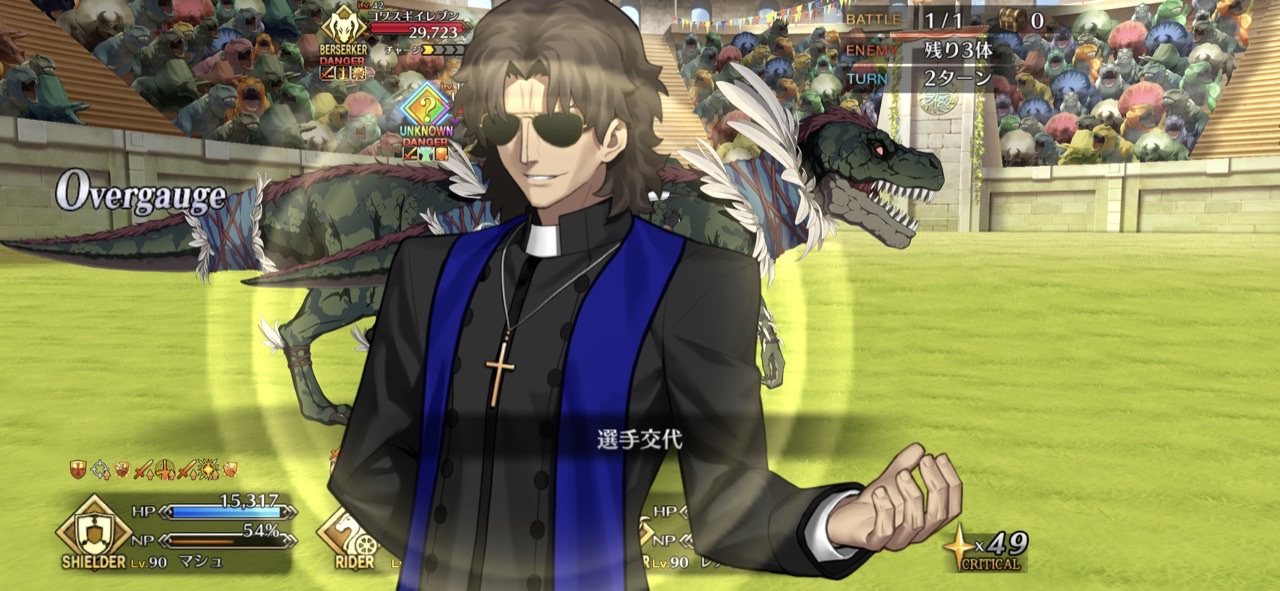 粛正防御は未だにオンリー要素だし、NPも補充できてNP獲得量も増やせてアーツバフまで付与できる……まだまだ代わりは来なさそうだなぁプーリンも強いんだけどねえ、対粛清防御がオンリーワンすぎて…。