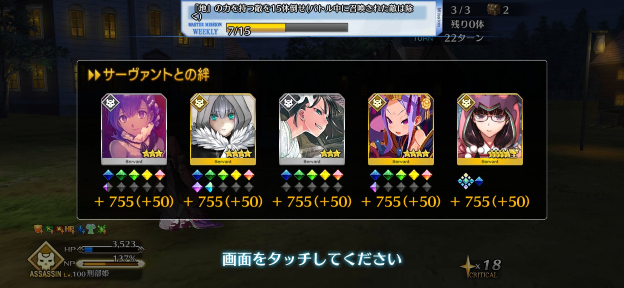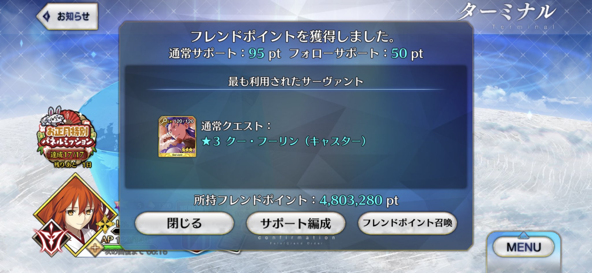 現在のフリクエでざっと絆の戦いの半分程度。