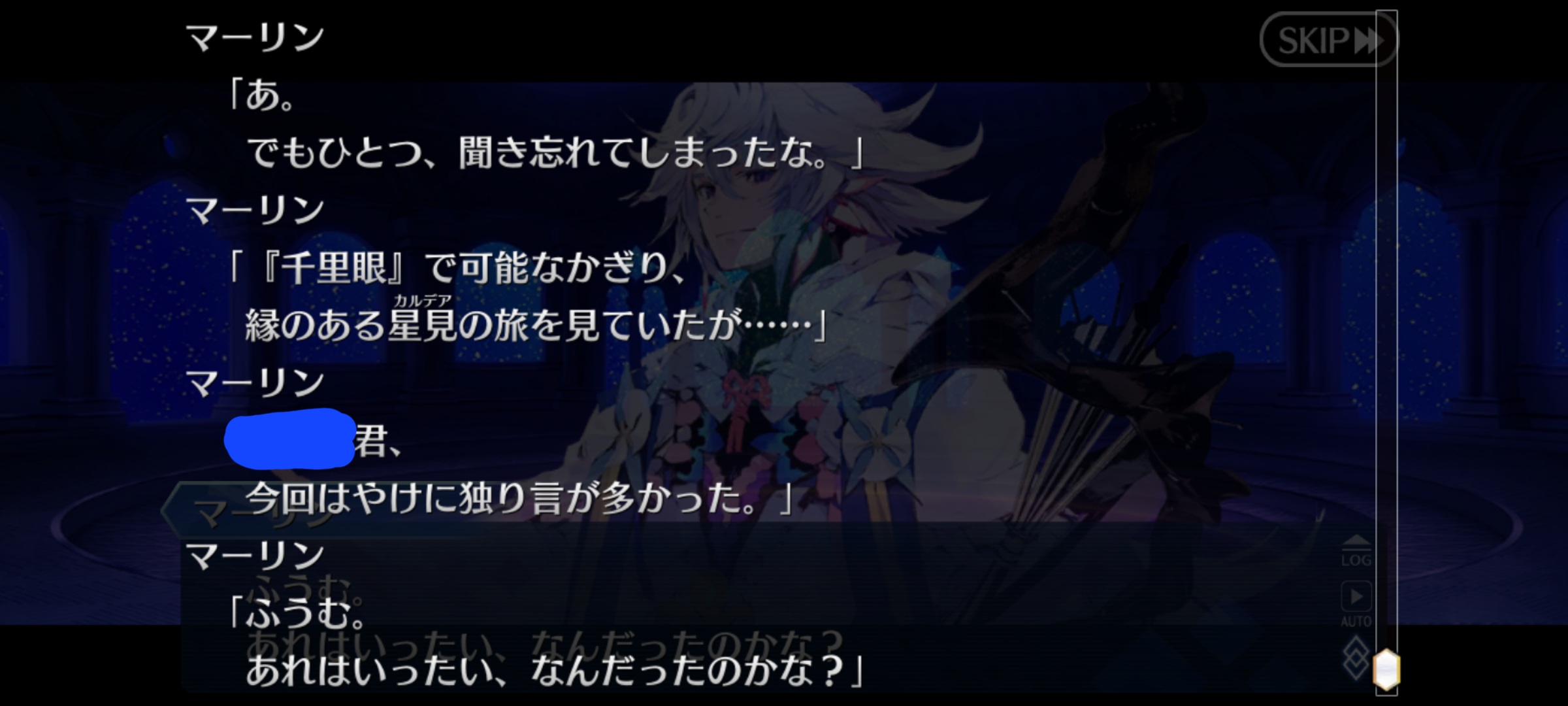 予言の旅に出る前のキャストリアに語りかけるマーリンの一人称が『俺』だったから、ははぁん?さてはマーリンじゃないな?お主はエアプマーリンだな?って予想でしたの。>>20