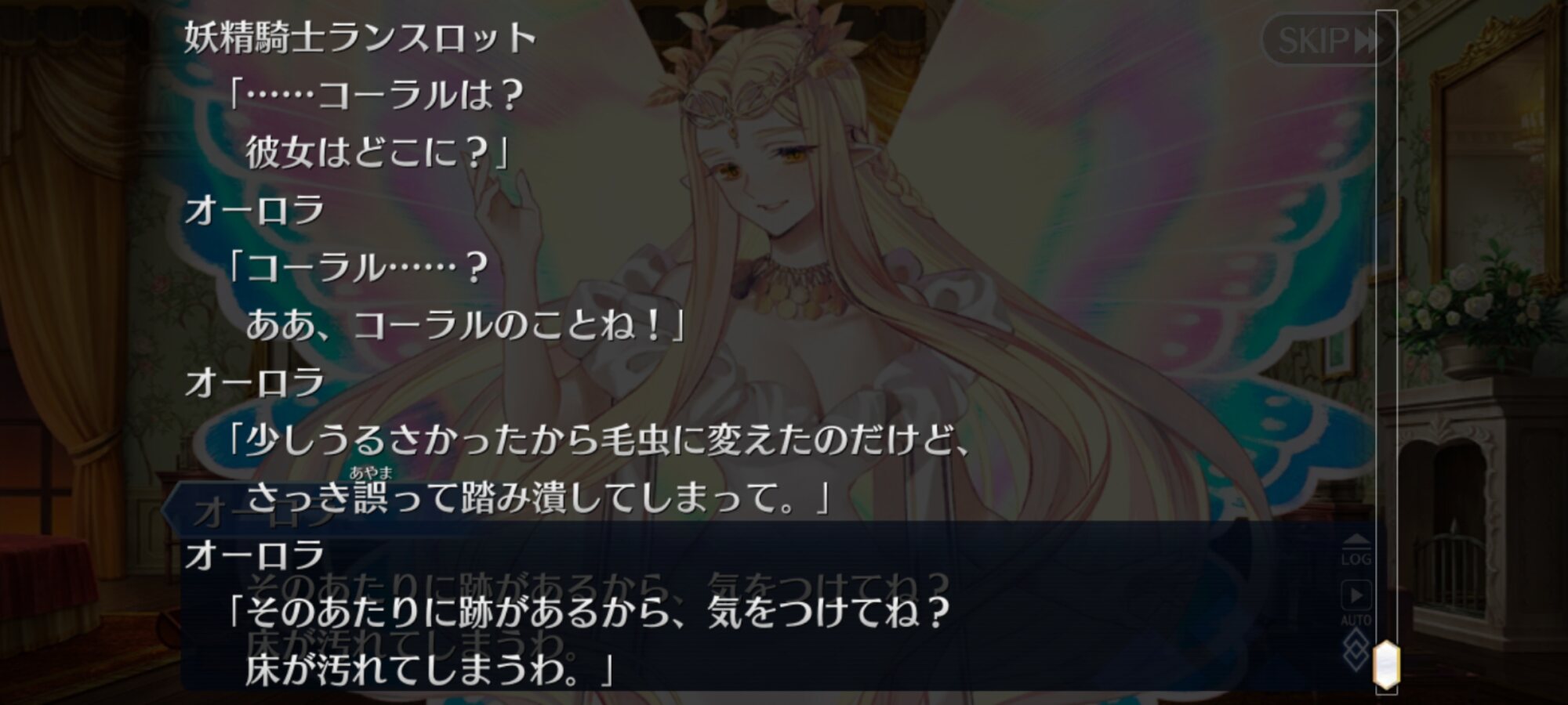 羽根の輝きの云々からして気にしてなくもないのですが、気にした瞬間にまたしょげて輝きが…という悪循環になるので、オーロラさんは四方八方に破茶滅茶に難儀な妖精さんなのですな。>>45