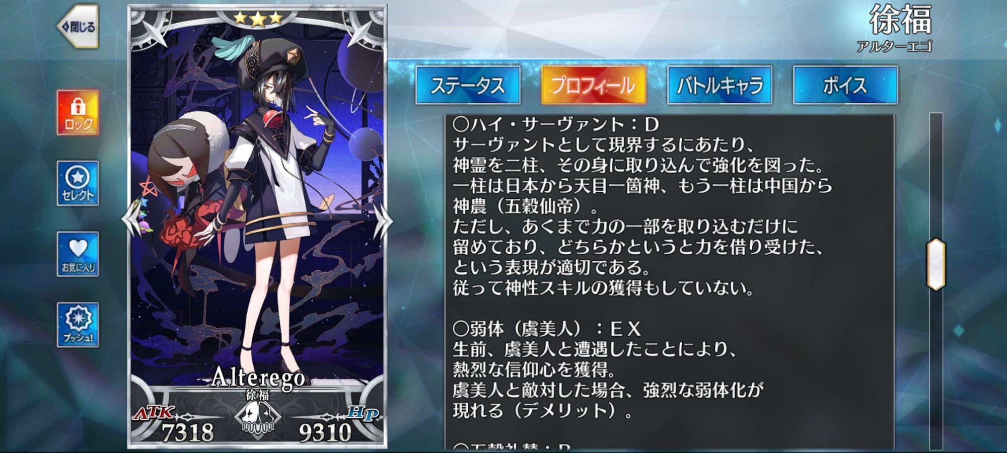 1擬似サーヴァントで唯一プロフ6が未開封(言峰もプロフ6が開くのに)
