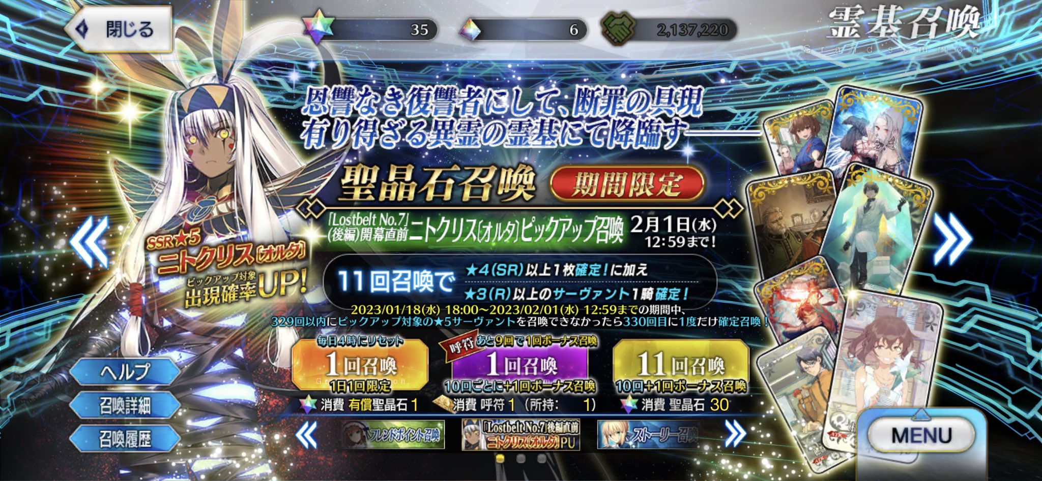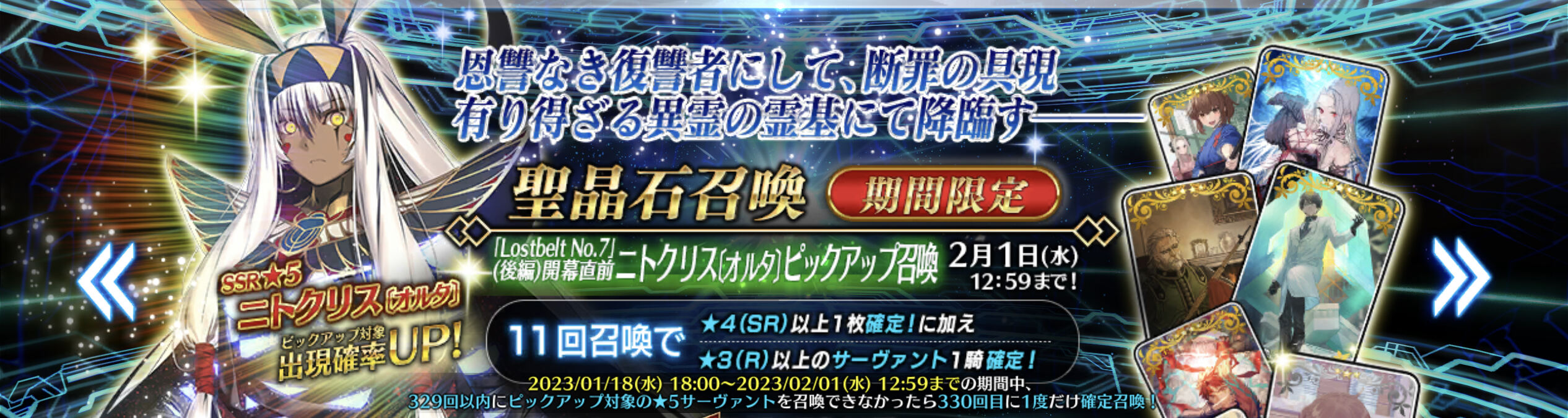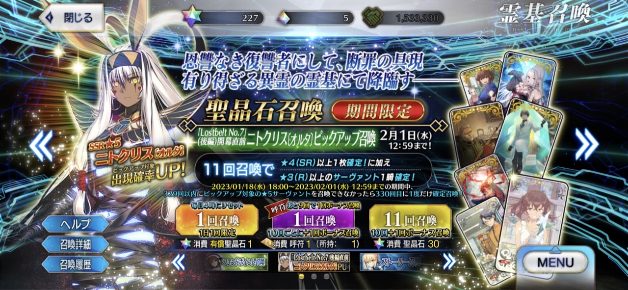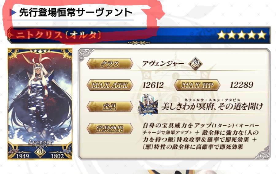 そもそも今年の実装鯖ニトちゃん以外だとラスプーチンしかまだ出てねぇ!!これからもどんどんオルタナティブ化とかは見てみたいなぁ