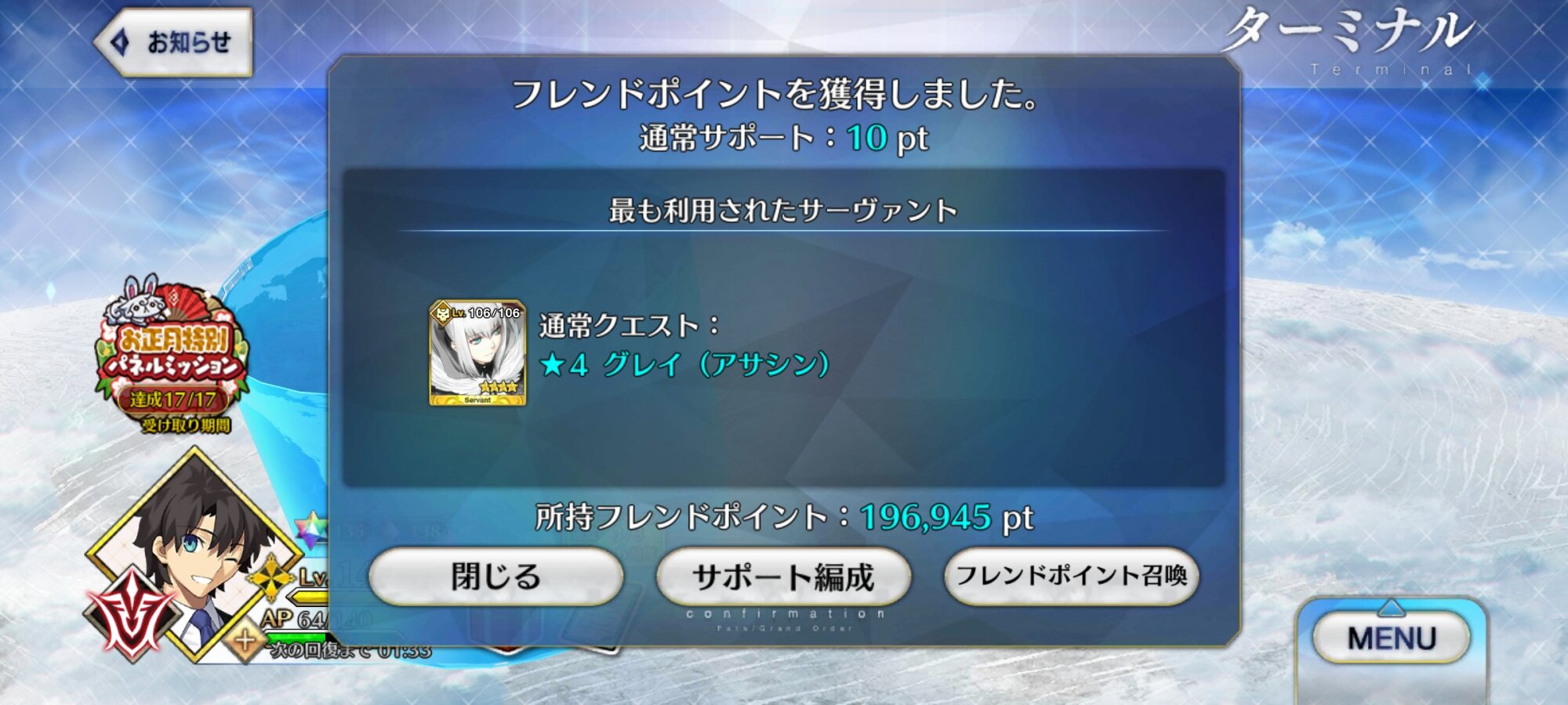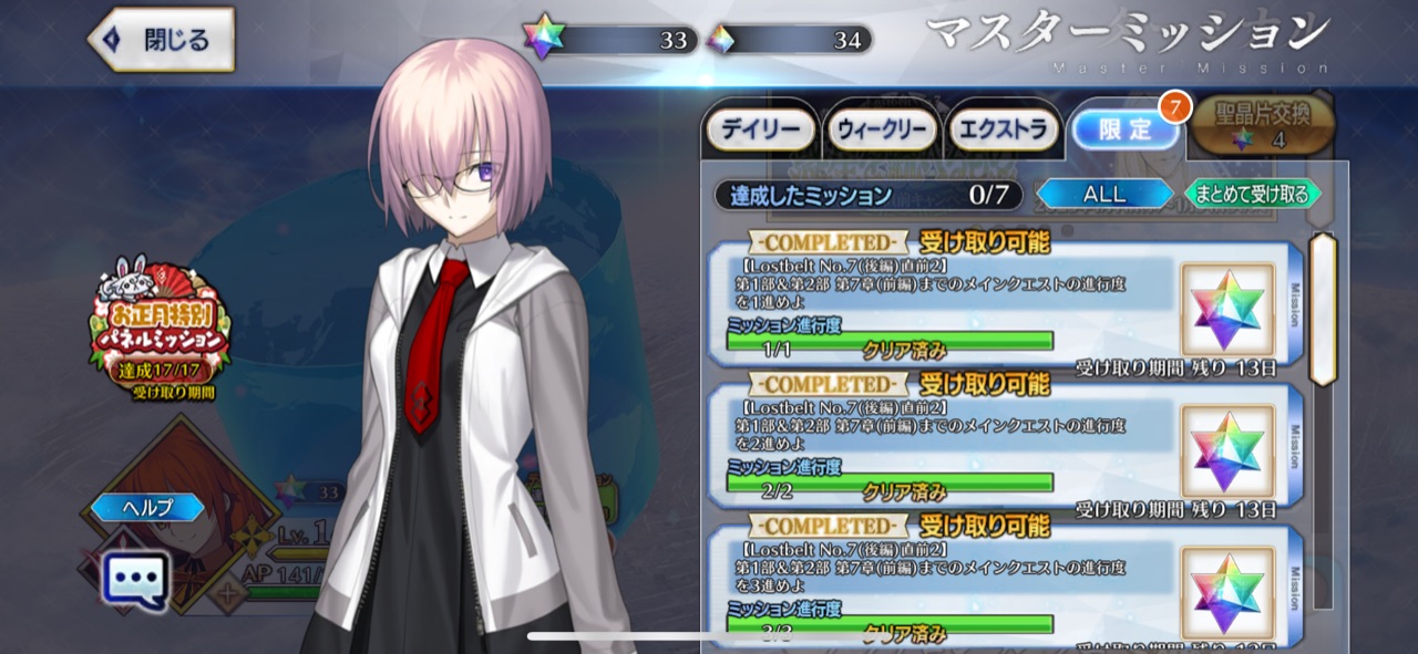 てかサブ垢で進めるの躊躇してたらミッション終わってて石回収数減ったわ(馬鹿)
