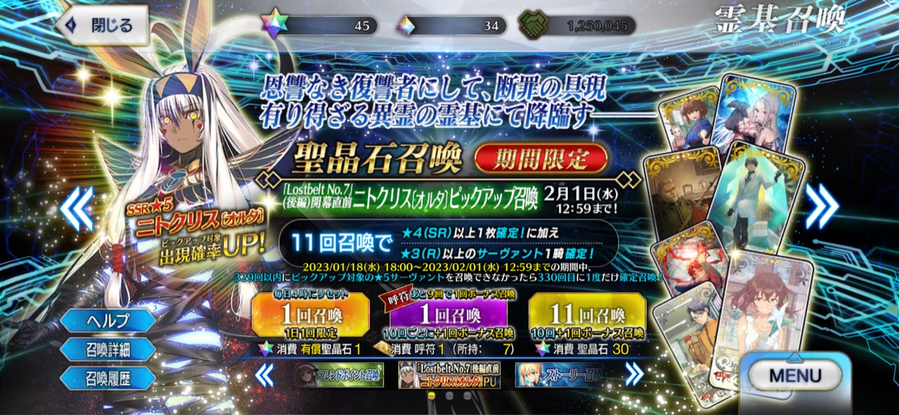 さっき軽くスキルマして来たが、銀素材が多めだねそういえばオルタのニトちゃんも恒常だったのね