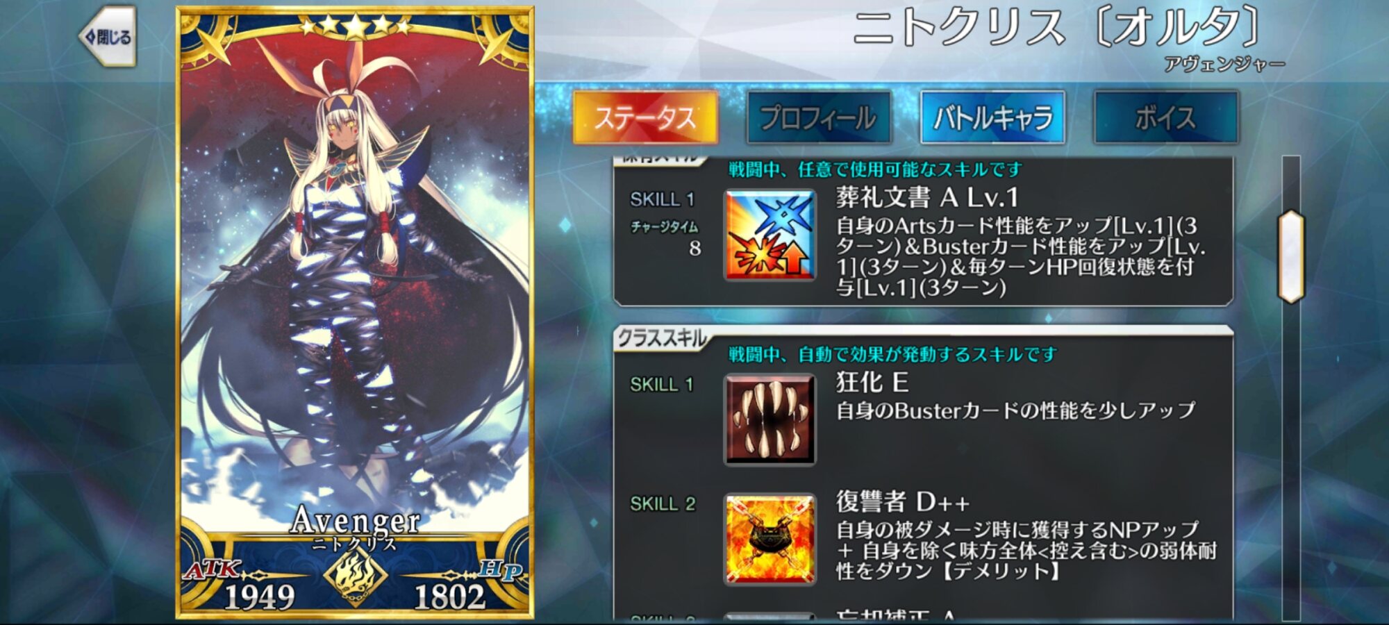 時にニトクリスオルタはマイルームで語り部さん宛ボイスあるのかな?それによっては私はもうちょっとだけ頑張らないといけない
