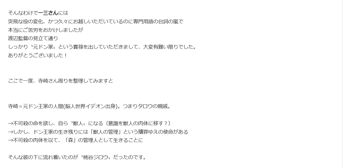 寺崎さんの料理美味かったりするので、少なくとも彼は彼なりに次郎の事をホントに想っている と事実がエグさを余計に際立たせてるの酷くない……?>>938